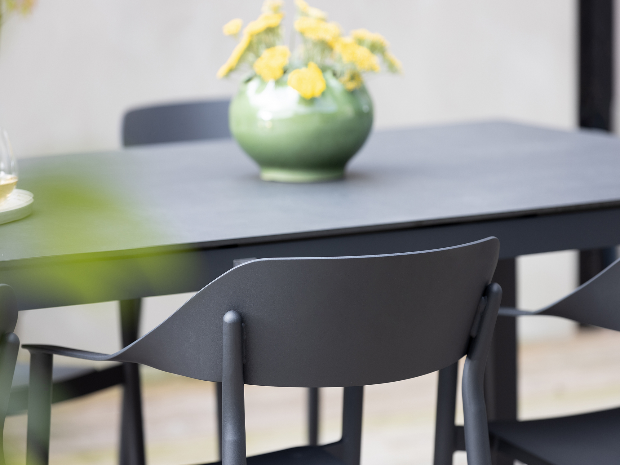 HPL tafelblad: Dit blad met natuurlijke leisteenlook is kras- en vlekbestendig, waardoor het er na vele etentjes nog steeds als nieuw uitziet.