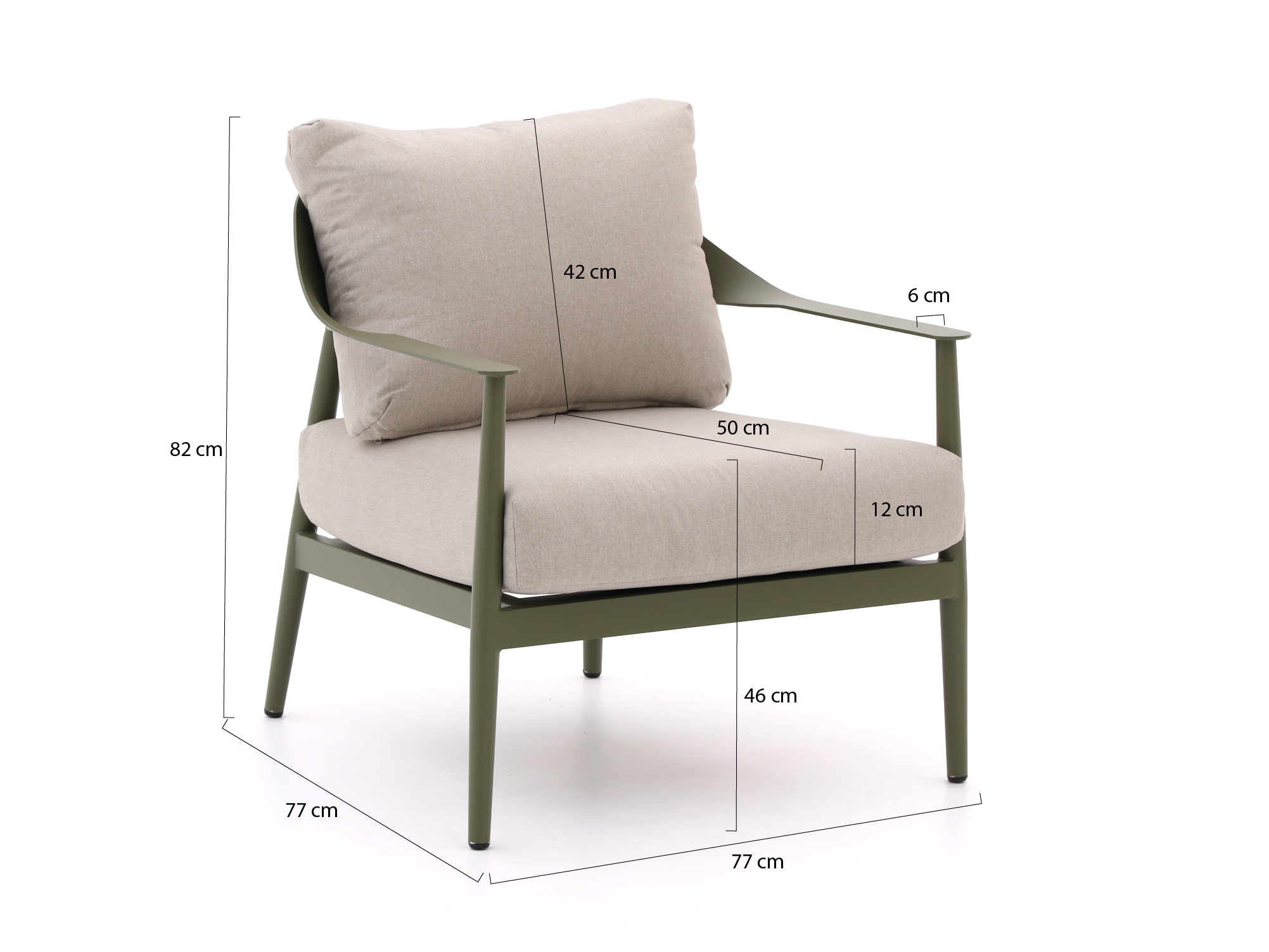 • Groene kleur met beige kussens: combineert makkelijk met andere tuinmeubels en accessoires
