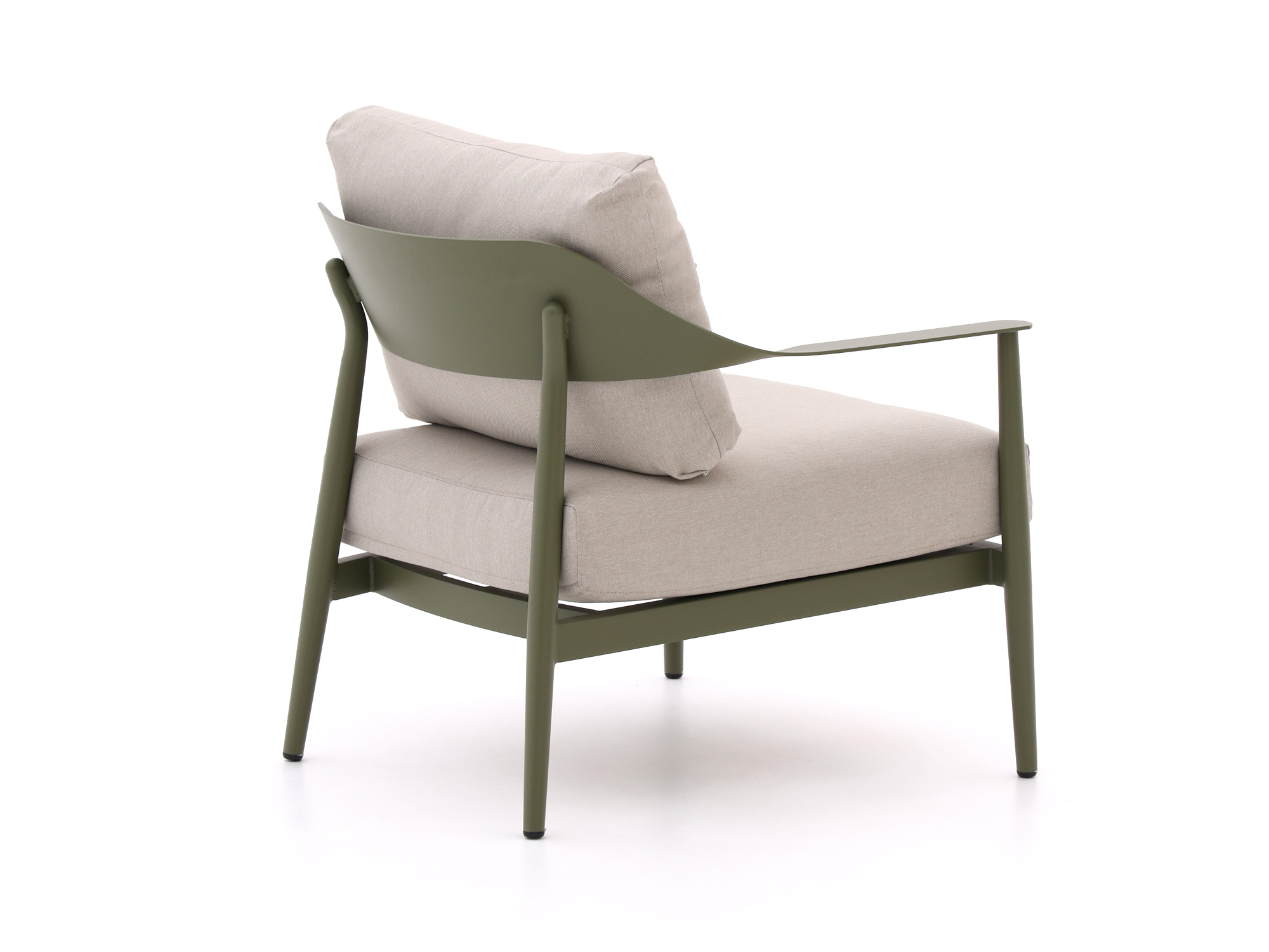 De Bellagio Valli lounge tuinstoel groen is een fijne loungestoel als je graag wat langer buiten zit om een boek te lezen of rustig bij te kletsen. De rugleuning staat net wat verder naar achter, waardoor je automatisch ontspannen zit, terwijl de stevige kussens in beige je rug en zitvlak zacht ondersteunen. Het aluminium frame en de aluminium zitting zorgen voor een sterke, maar lichte stoel die je makkelijk verplaatst als je je terras wilt veranderen. Aluminium kan niet doorroesten en heeft weinig onderhoud nodig, dus je hoeft er weinig naar om te kijken, behalve als je erin gaat zitten.