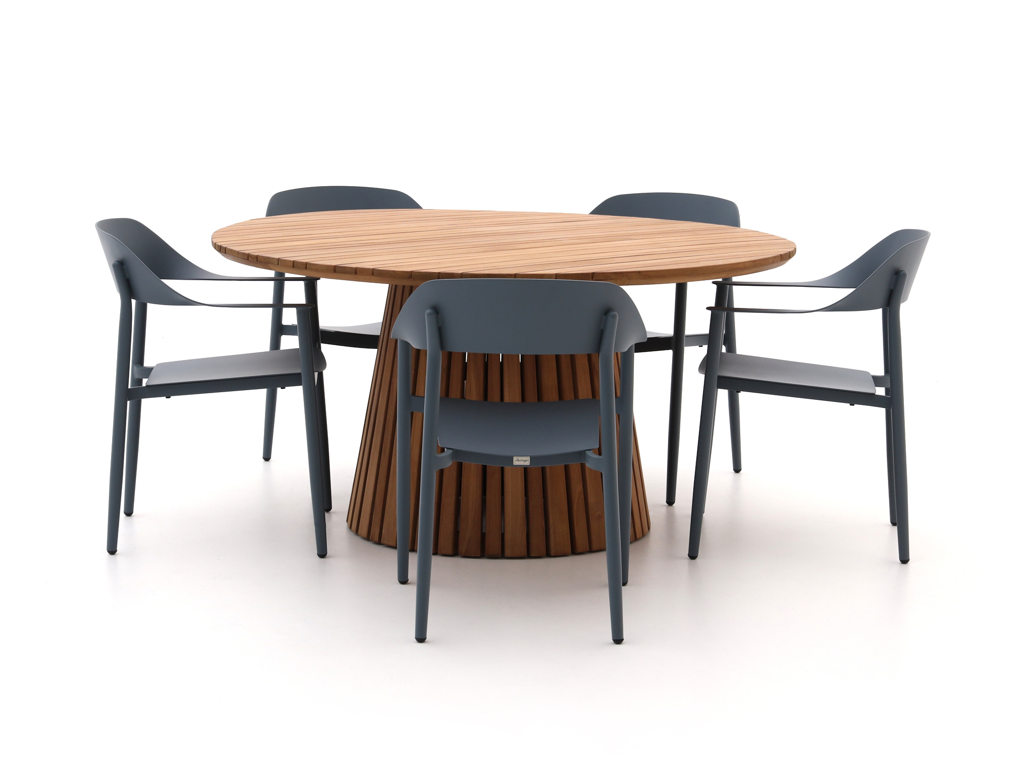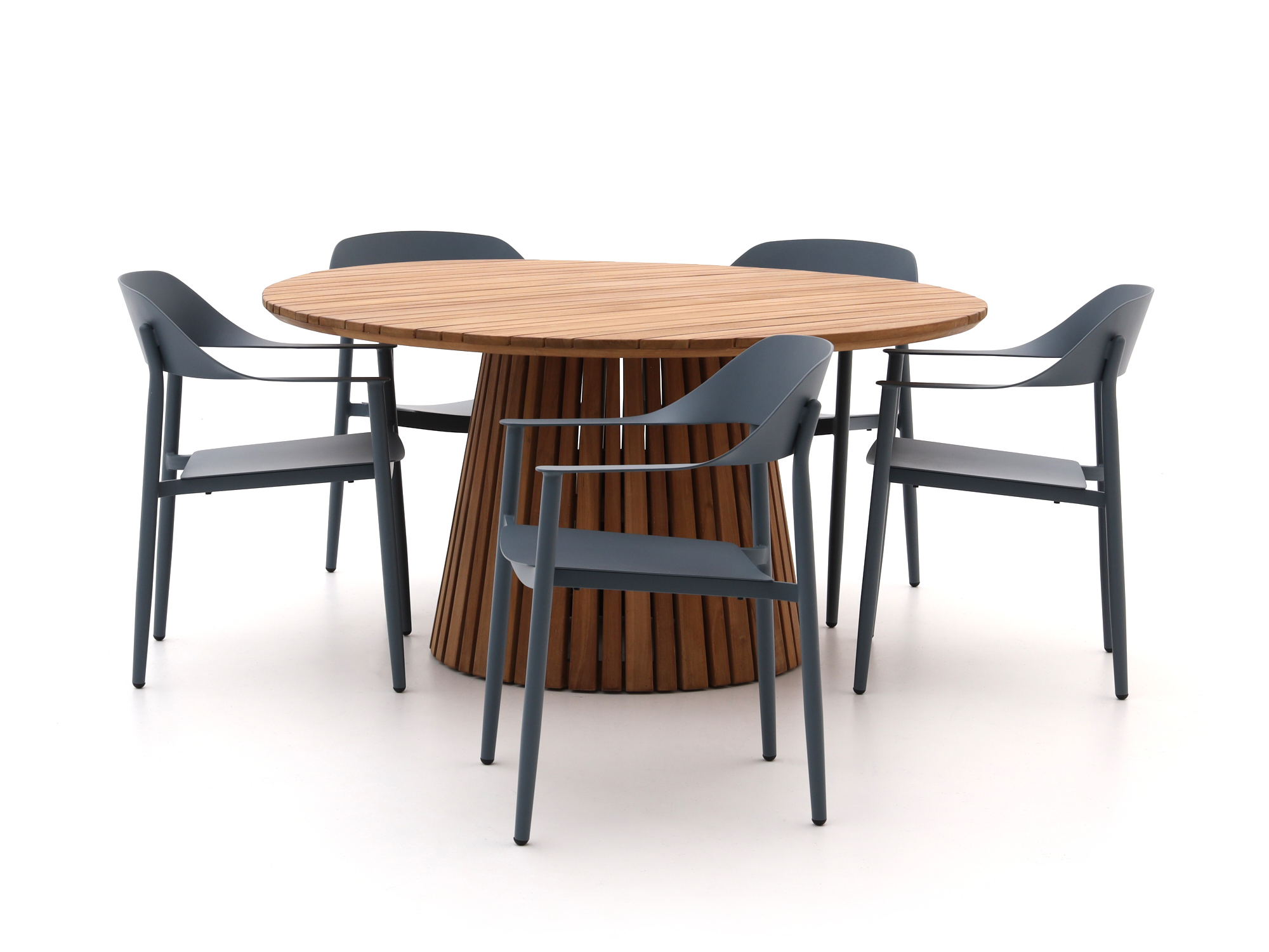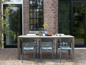 Neutrale tinten: De combinatie van natural teak en blauw zorgt voor een frisse, maar tijdloze uitstraling in je tuin.