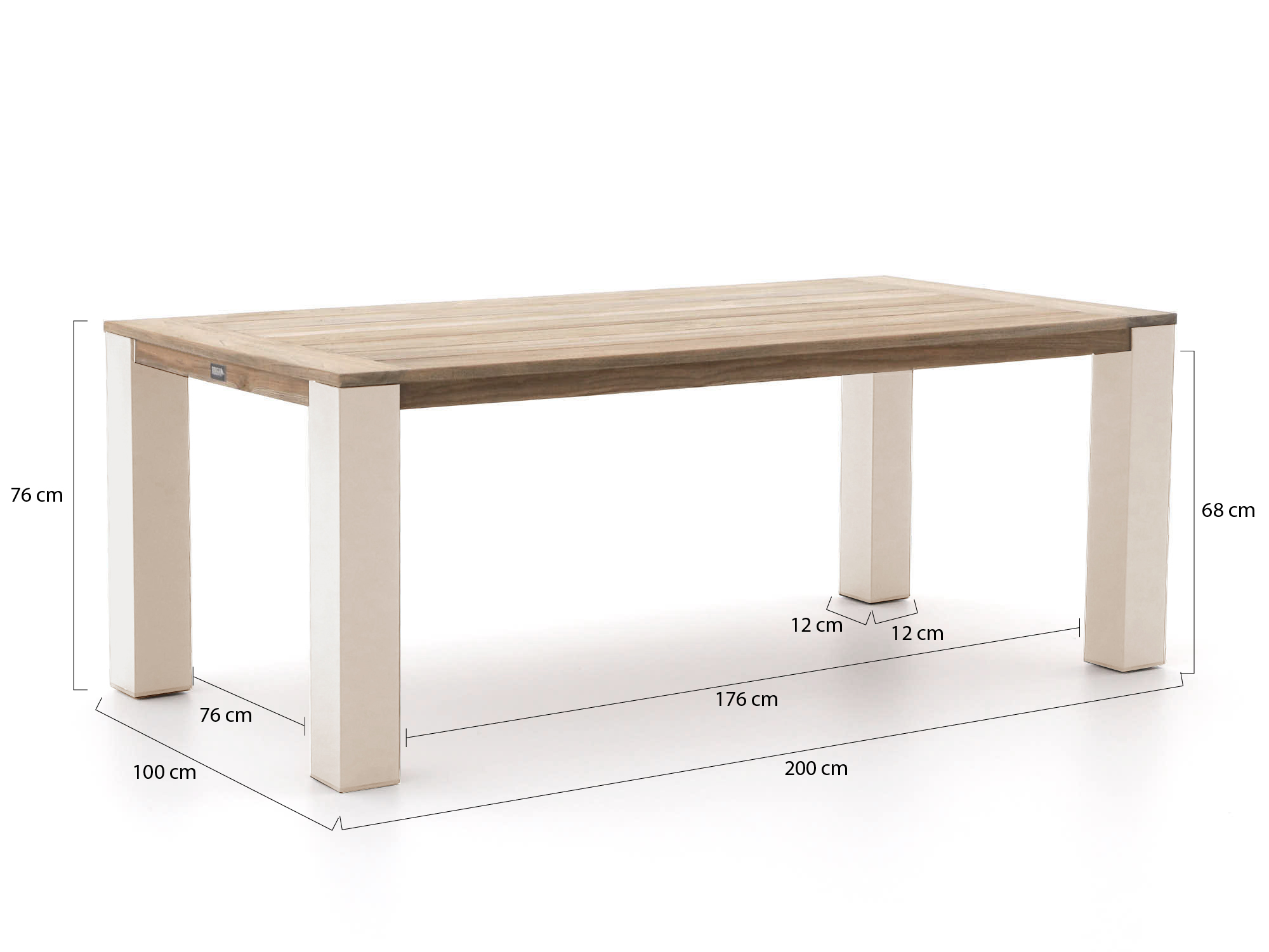 • Teakhouten tafelblad: De tafel is van teakhout, een sterk natuurproduct dat tegen alle weersomstandigheden kan, zodat de tafel gewoon buiten kan blijven staan.