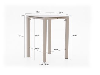 • Compact formaat (75 cm): De tafel neemt weinig ruimte in, waardoor hij goed past op een kleiner terras of balkon.