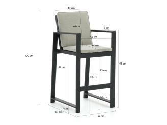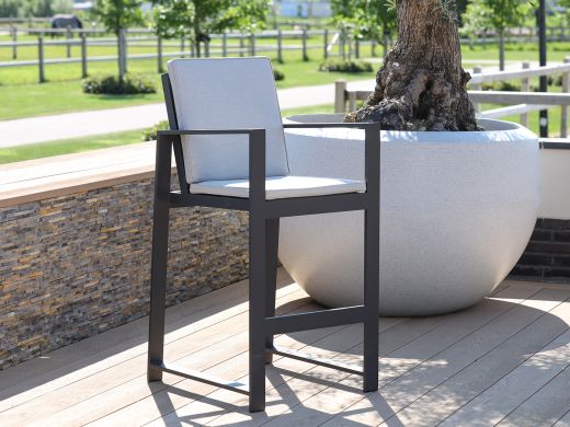 De Bellagio Vezzano barstoel in stijlvol grijs is een echte blikvanger voor je tuin of terras. Deze barstoel combineert een strak design met praktisch comfort, dankzij het lichte aluminium frame en de ademende textileen zitting. Het aluminium zorgt ervoor dat de stoel niet doorroest en onderhoudsarm is, terwijl de textileen zitting zich naar je lichaam vormt voor een comfortabele zit, zelfs tijdens lange zomeravonden. En met het bijgeleverde kussen zit je altijd heerlijk zacht. Wie had gedacht dat stijl en comfort zo goed samen konden gaan? Deze barstoel bewijst het tegendeel met flair!