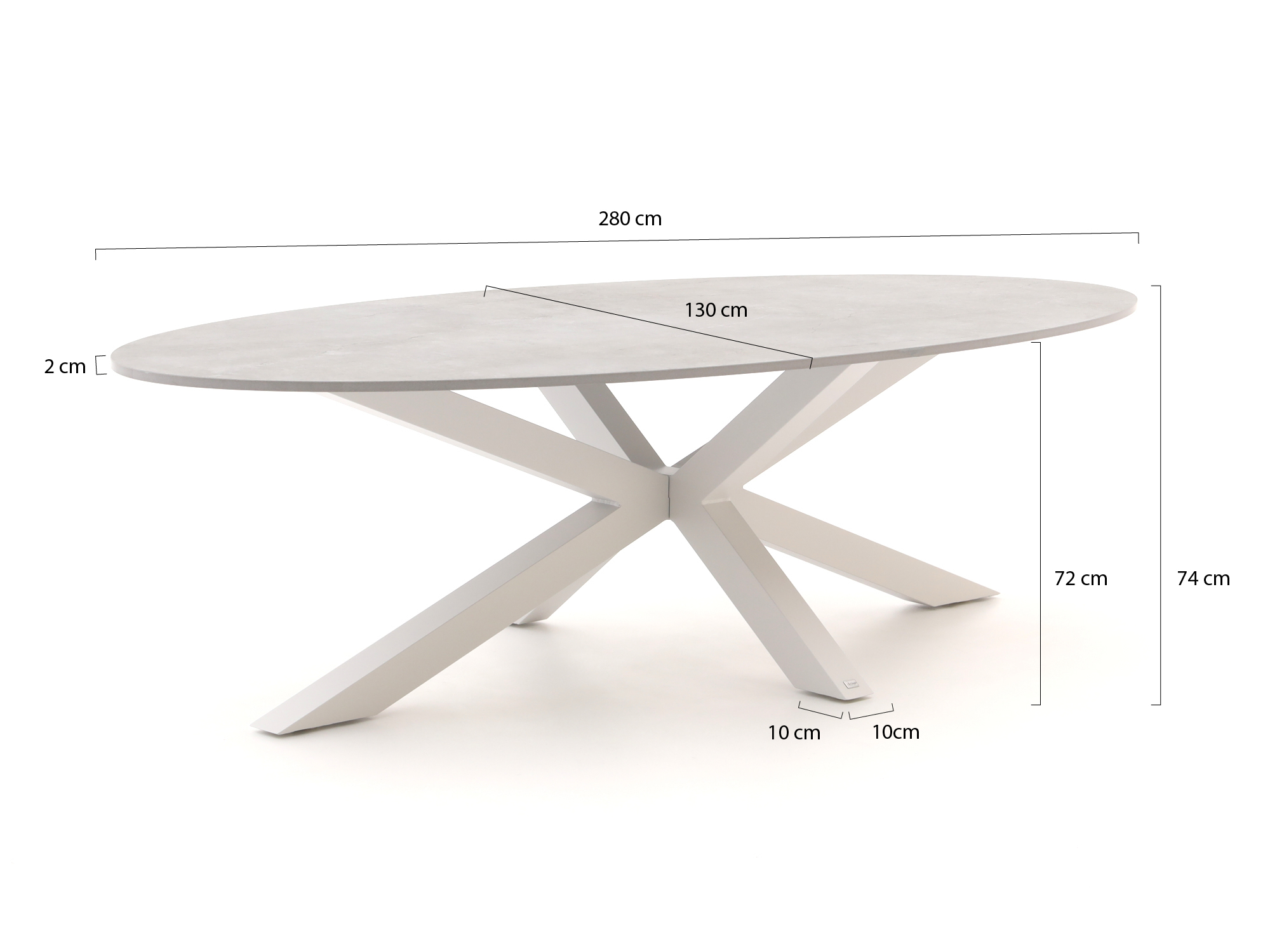 Organische vorm: De ellipsvormige tafel heeft geen harde hoeken, wat niet alleen zachter oogt in je tuin, maar ook praktisch is. Je stoot minder snel je heup tegen een scherpe hoek en het is eenvoudiger om extra stoelen aan te schuiven.