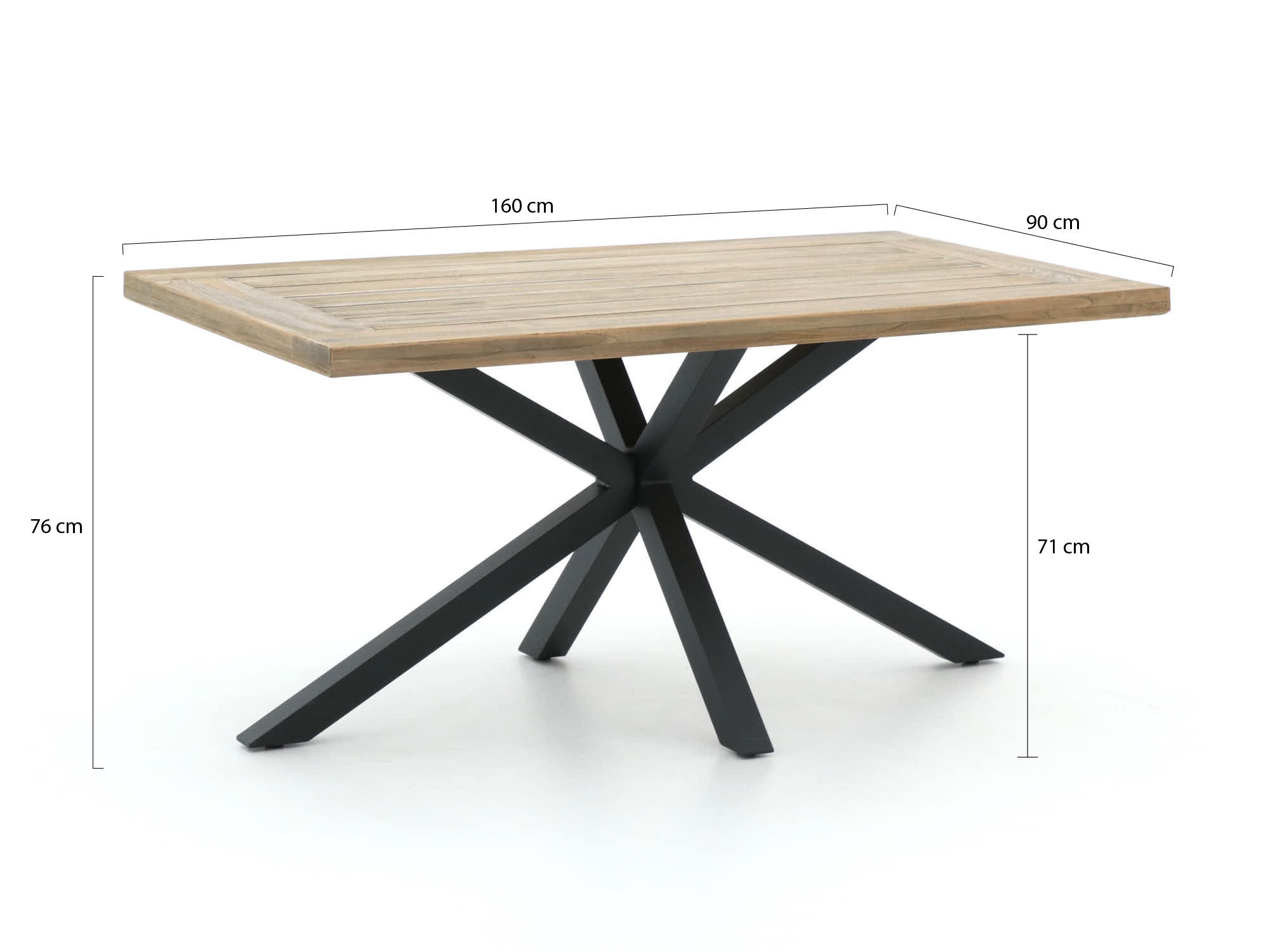 Teakhouten tafelblad: Het Old Teak Greywash tafelblad is bestand tegen alle weersomstandigheden en biedt een stevige constructie zonder splinters. Ideaal voor buitengebruik!