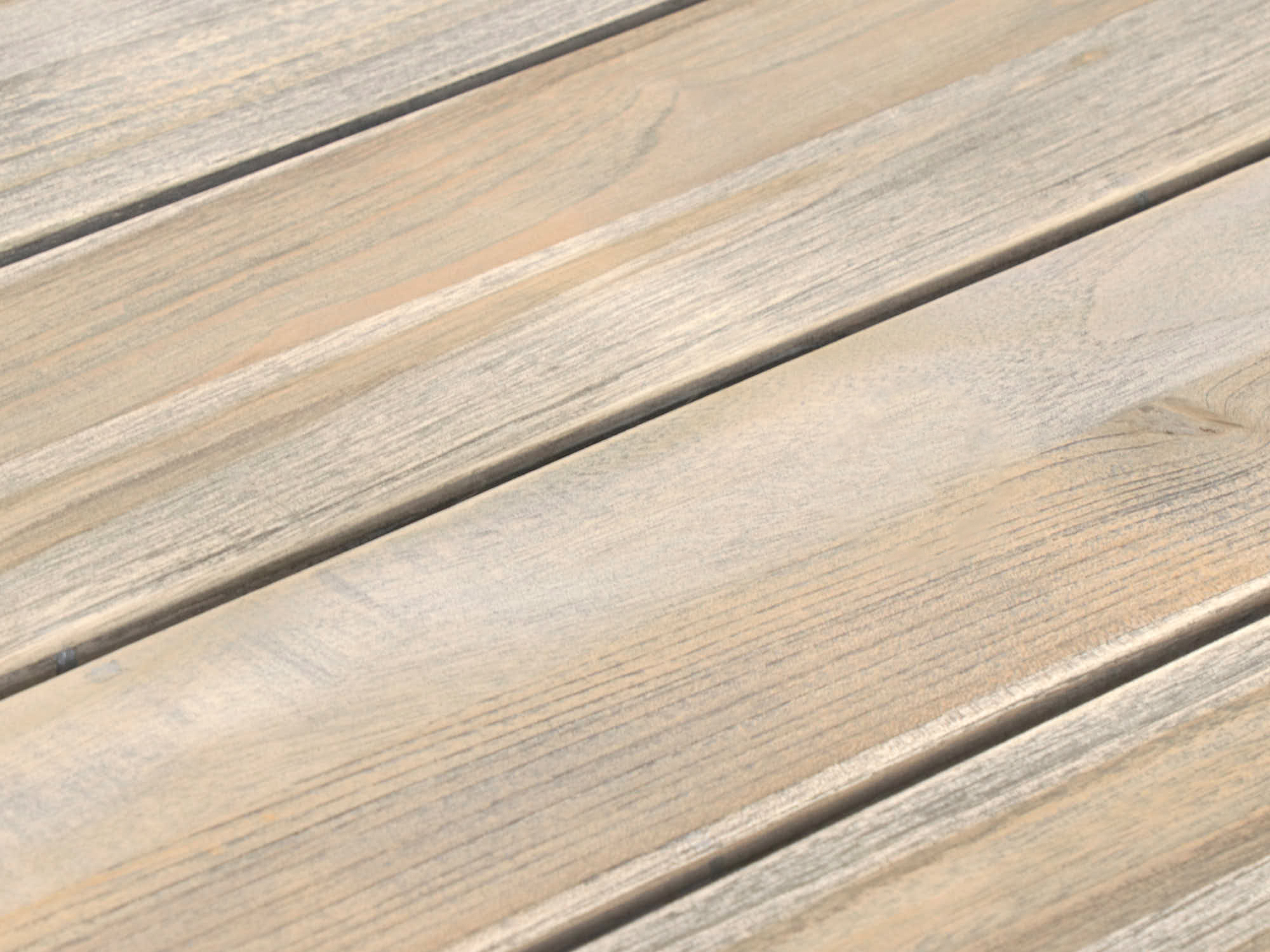 Teakhouten tafelblad: Bestand tegen alle weersomstandigheden en heeft een prachtige Old Teak Greywash afwerking.