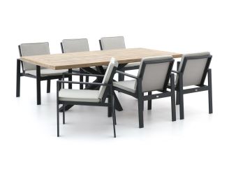 De Bellagio Vezzano/Montorio dining tuinset is een stijlvolle en comfortabele keuze voor je tuin. Met zijn robuuste aluminium frame en het prachtige teakhouten tafelblad in Old Teak Greywash, straalt deze set zowel elegantie als duurzaamheid uit. Het gebruik van textileen voor de zittingen zorgt voor een aangename zitervaring, zelfs tijdens lange zomeravonden. Deze set is onderhoudsarm en bestand tegen alle weersomstandigheden, waardoor je er jarenlang plezier van zult hebben. Zet de barbecue maar aan, want deze set is klaar voor gezellige etentjes in de buitenlucht!