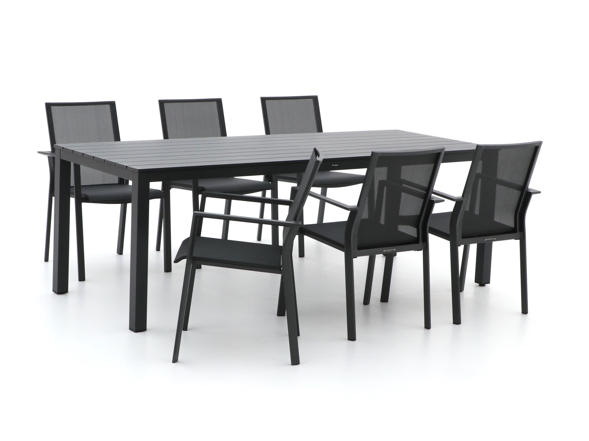 Met de Bernstein Amberg/Menzano 220cm dining tuinset haal je een stukje luxe en comfort naar je tuin. Deze 7-delige set in stijlvol antraciet biedt plaats aan zes personen, perfect voor gezellige etentjes of lange zomeravonden met vrienden en familie. De stoelen zijn stapelbaar, wat handig is als je ruimte wilt besparen. Het aluminium frame zorgt ervoor dat de set stevig staat en niet roest, terwijl de textileen zittingen zich naar je lichaam vormen voor extra zitcomfort. Of je nu een snelle lunch of een uitgebreid diner plant, deze set maakt van elke maaltijd een feestje.