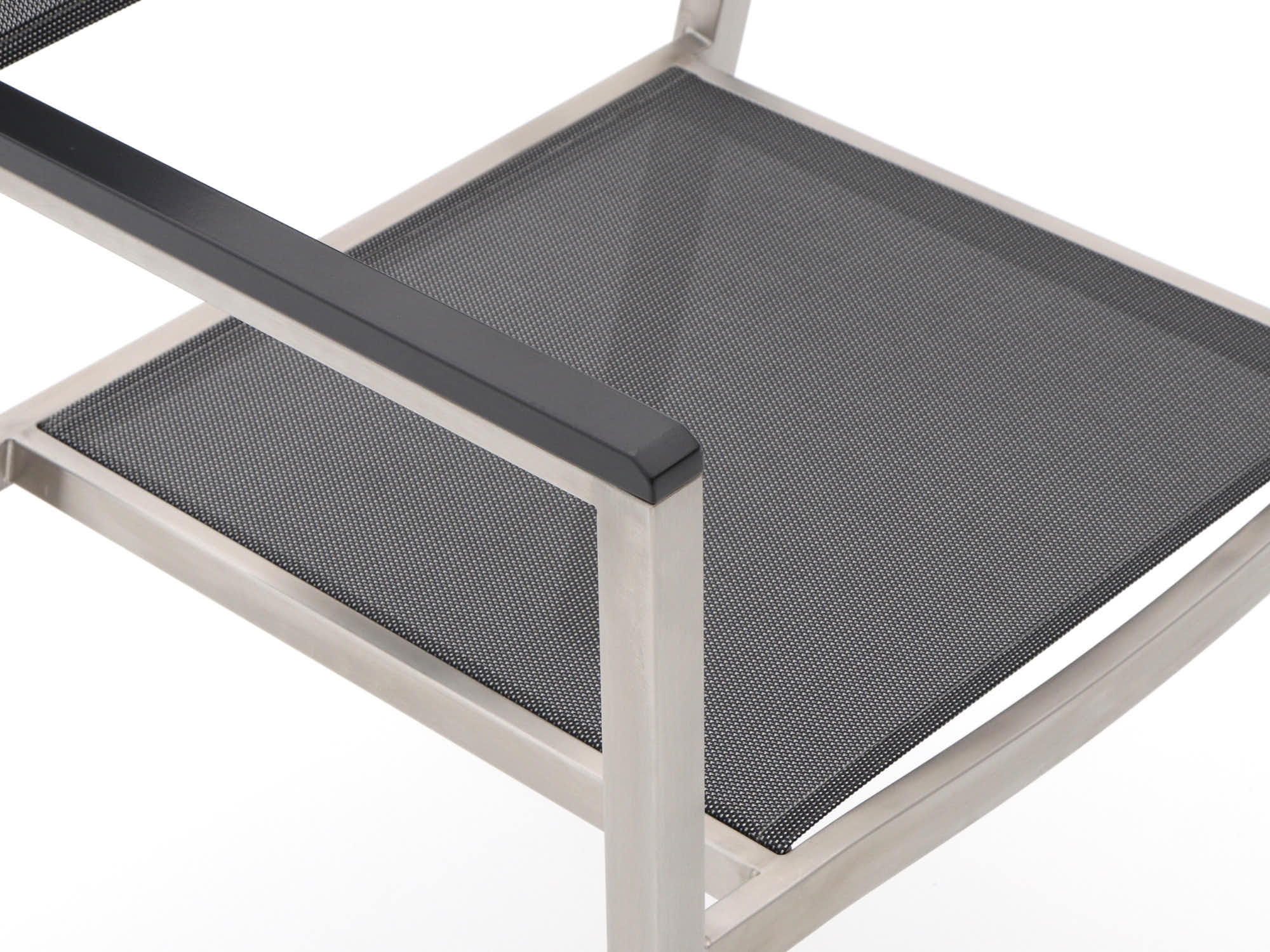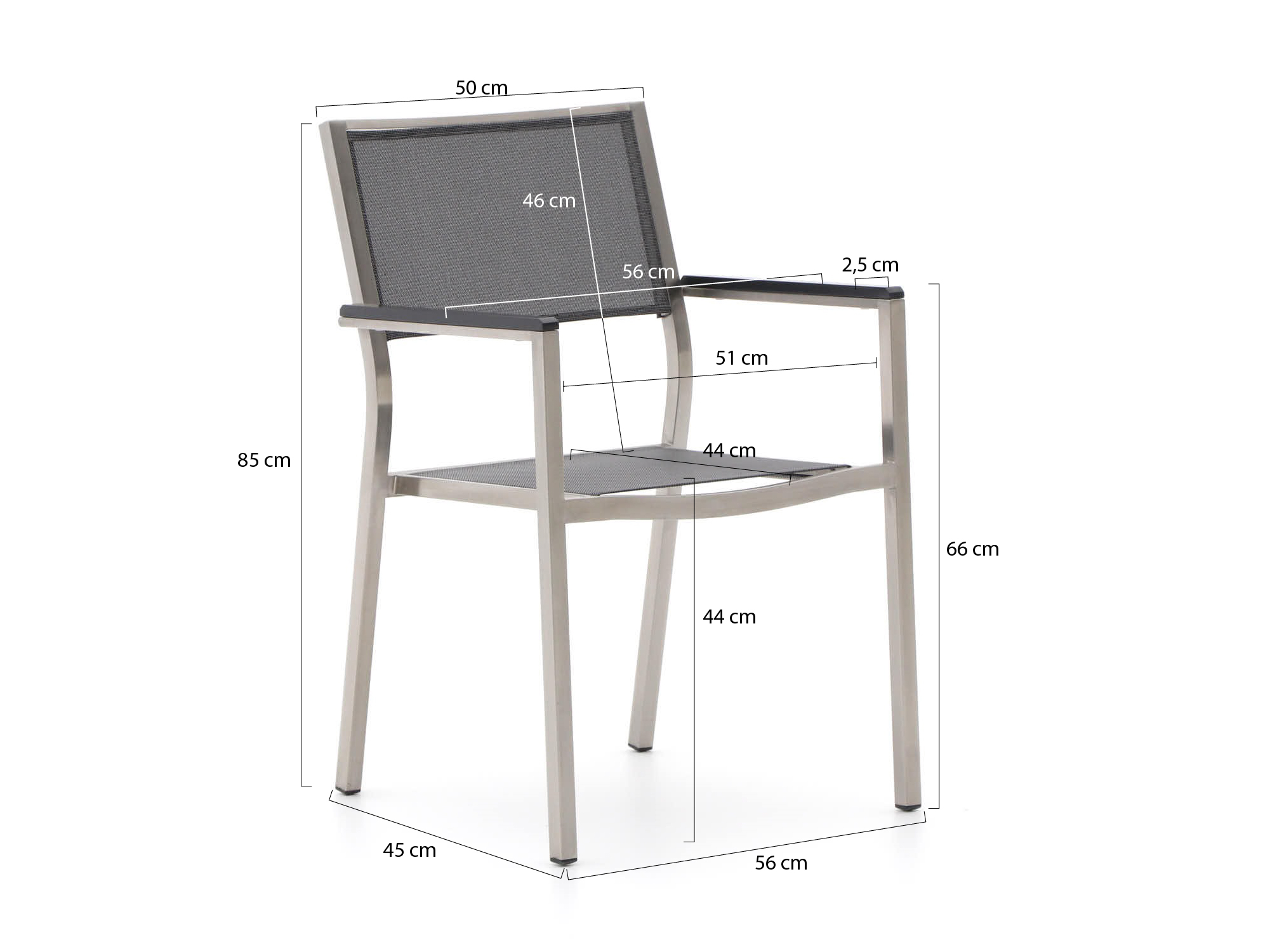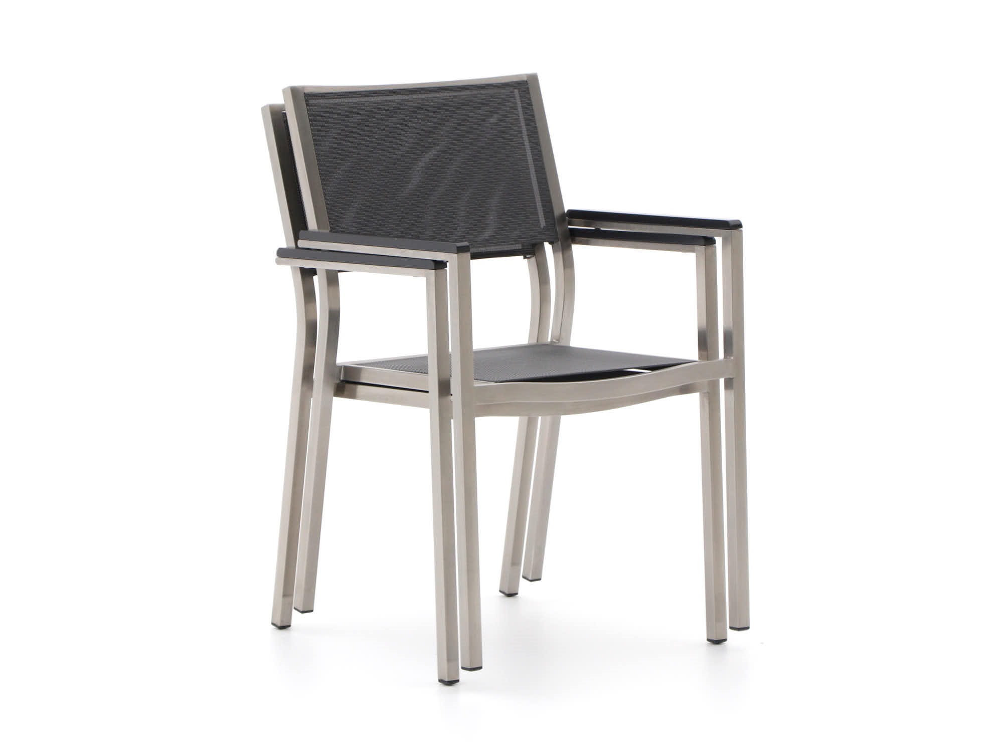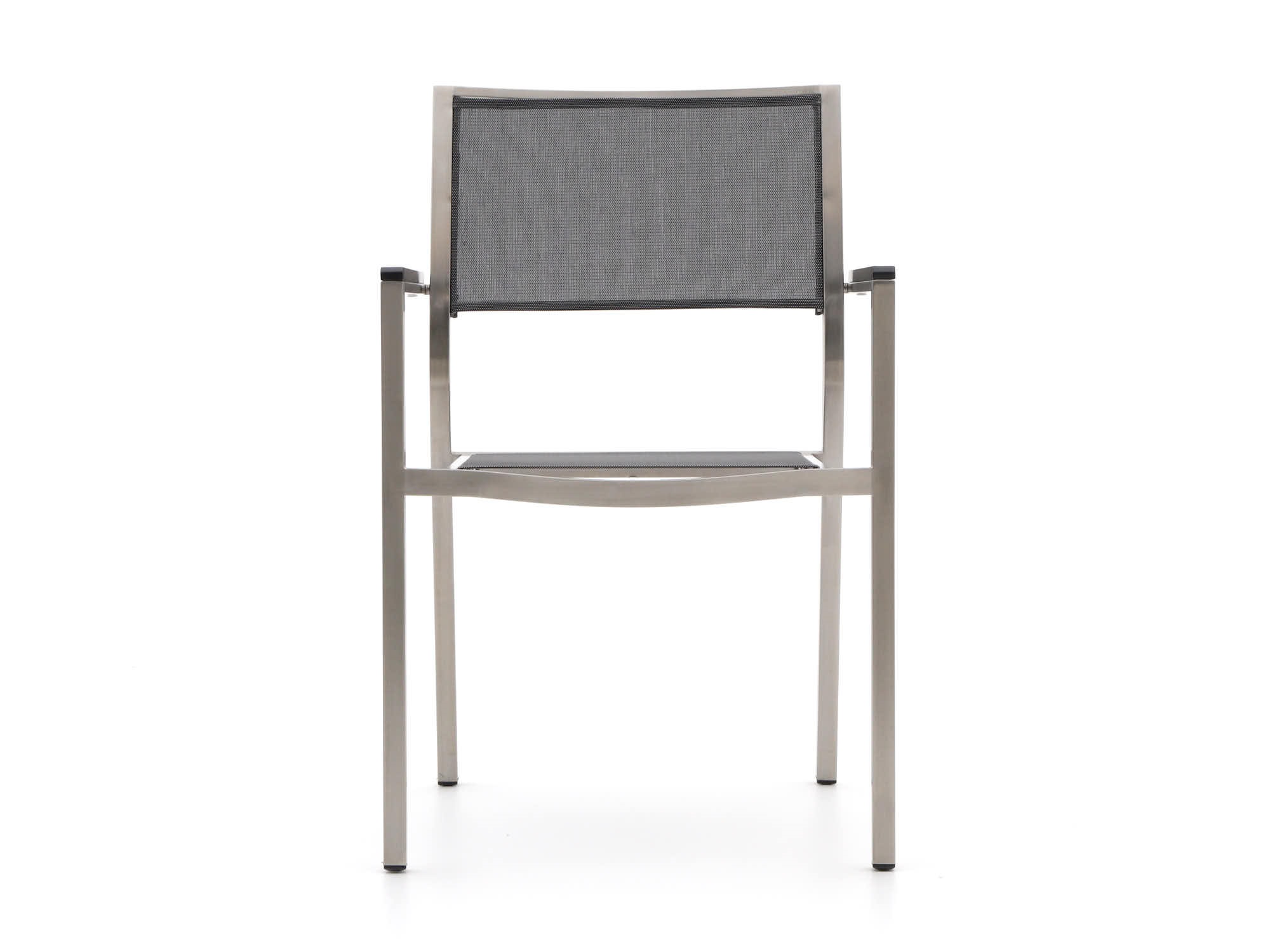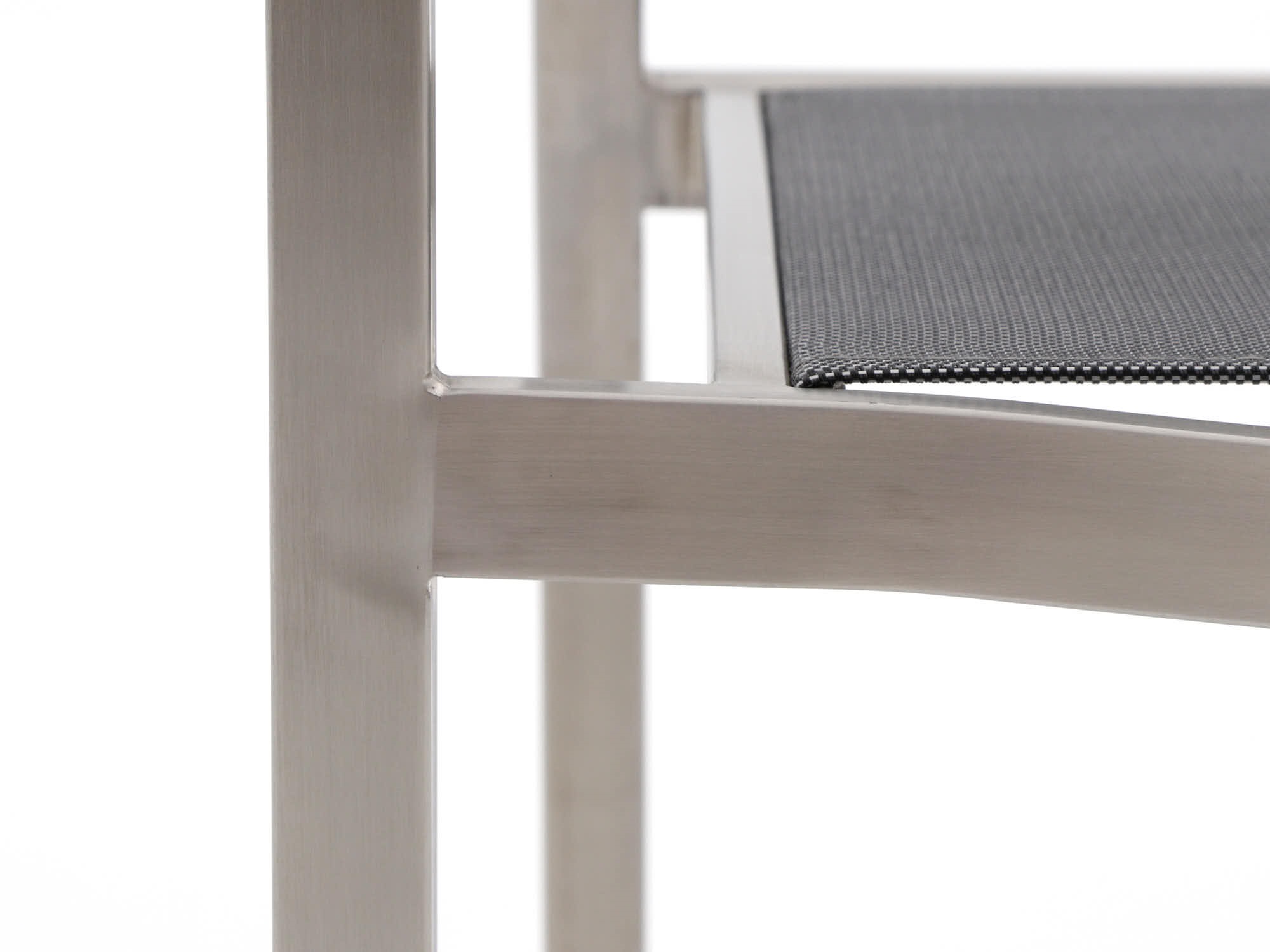 RVS frame: De stoelen en tafel zijn gemaakt van stevig RVS, wat betekent dat ze tegen een stootje kunnen en niet roesten. Dat is wel zo fijn als je ze het hele jaar door buiten wilt laten staan.
