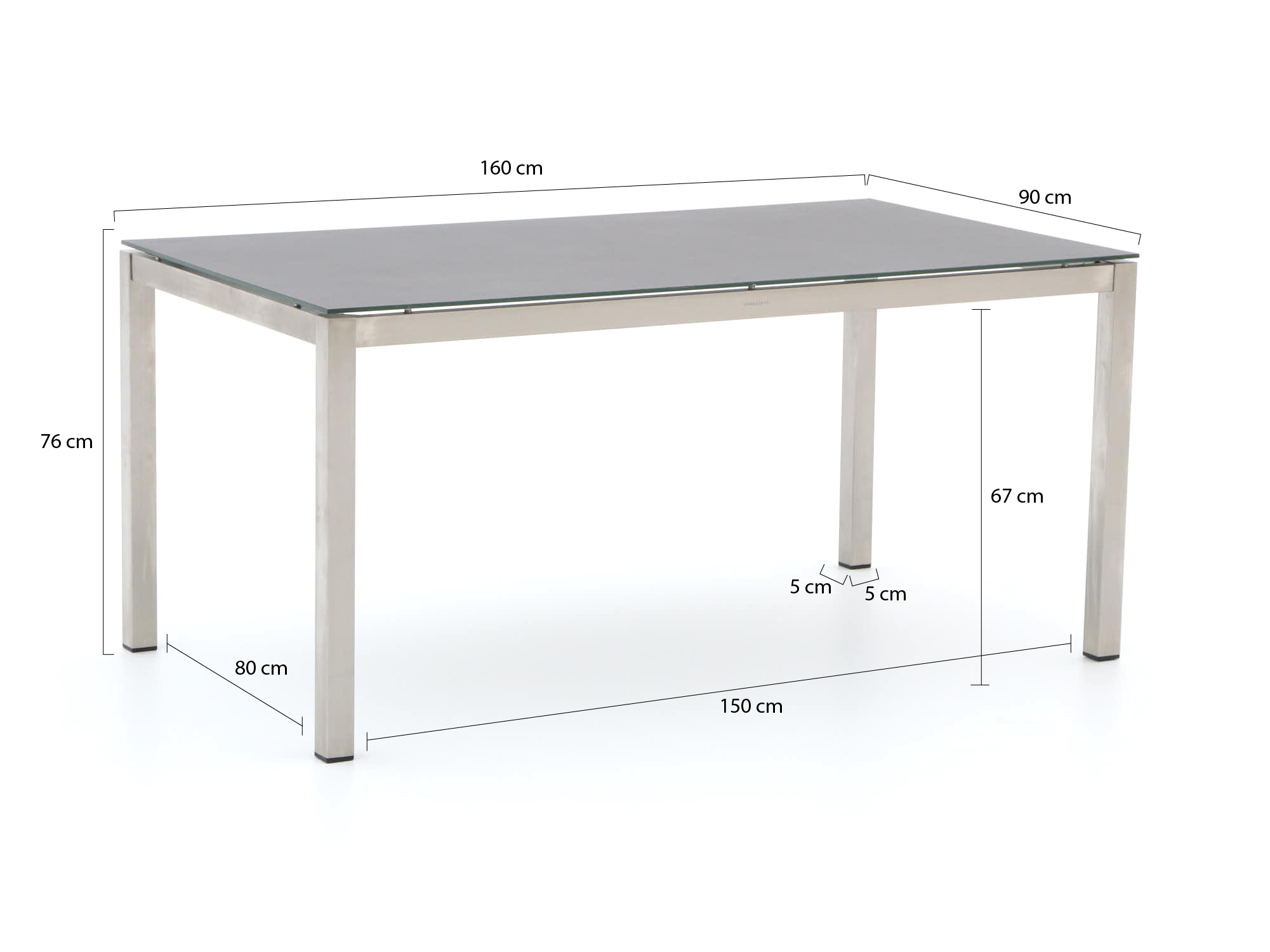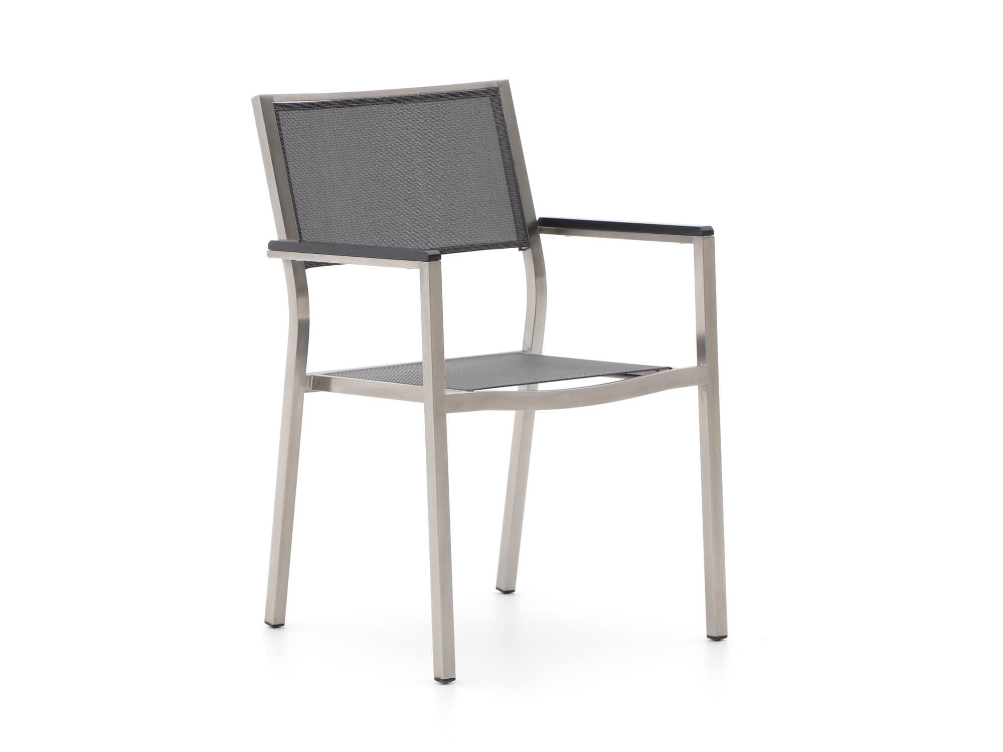 Met de Bernstein Freiburg 160cm dining tuinset haal je een vleugje moderne elegantie naar je tuin. Deze 5-delige set combineert stijl met functionaliteit, zodat je buitenleven net dat beetje extra krijgt. De stoelen zijn gemaakt van sterk RVS met een comfortabele grijze textileen zitting die zich naar je lichaam vormt. Ideaal voor lange zomeravonden vol gezelligheid. En als je de boel weer wilt opbergen, stapel je de stoelen eenvoudig op elkaar. Het tafelblad heeft een eigentijdse ceramic look, wat niet alleen mooi oogt, maar ook nog eens krasvast en makkelijk schoon te maken is. Zo kun je je focussen op wat echt belangrijk is: genieten van je gezelschap en de zon.