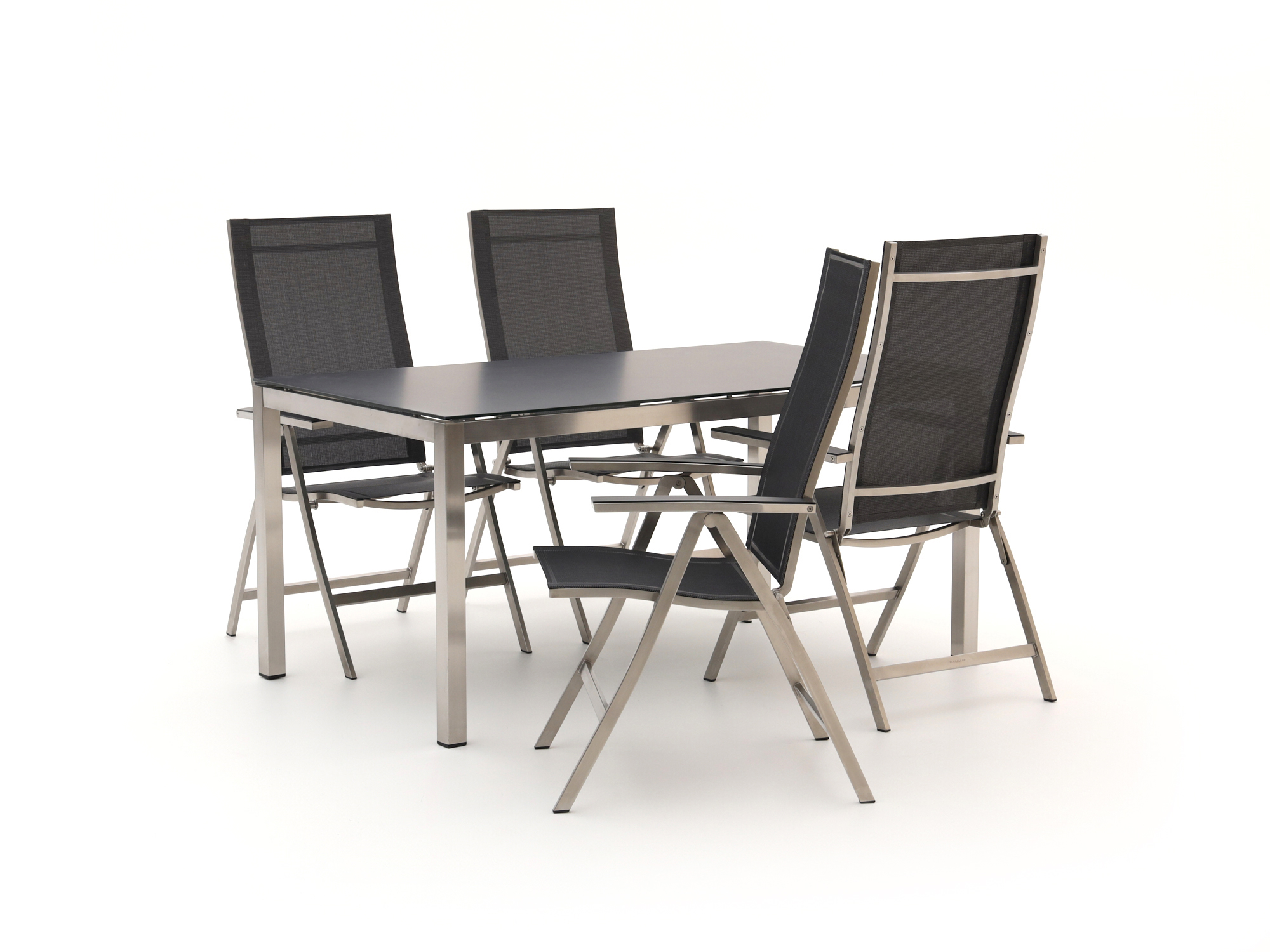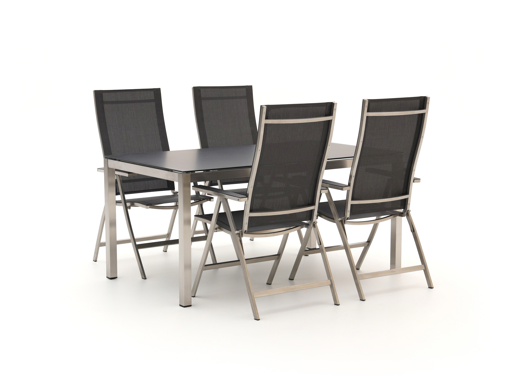 Met de Bernstein Freiburg/Koblenz dining tuinset haal je een stukje luxe en comfort naar je tuin. Deze 5-delige set is niet alleen een lust voor het oog met zijn strakke lijnen en moderne uitstraling, maar ook een genot om aan te zitten. De verstelbare stoelen met grijs textileen zitting vormen zich naar je lichaam, zodat je urenlang kunt genieten van een goed diner of een gezellige borrel. Het tafelblad met ceramic look is niet alleen stijlvol, maar ook praktisch: krasvast en makkelijk schoon te maken. Zo houd je meer tijd over voor de dingen die er echt toe doen – zoals genieten van het buitenleven.
