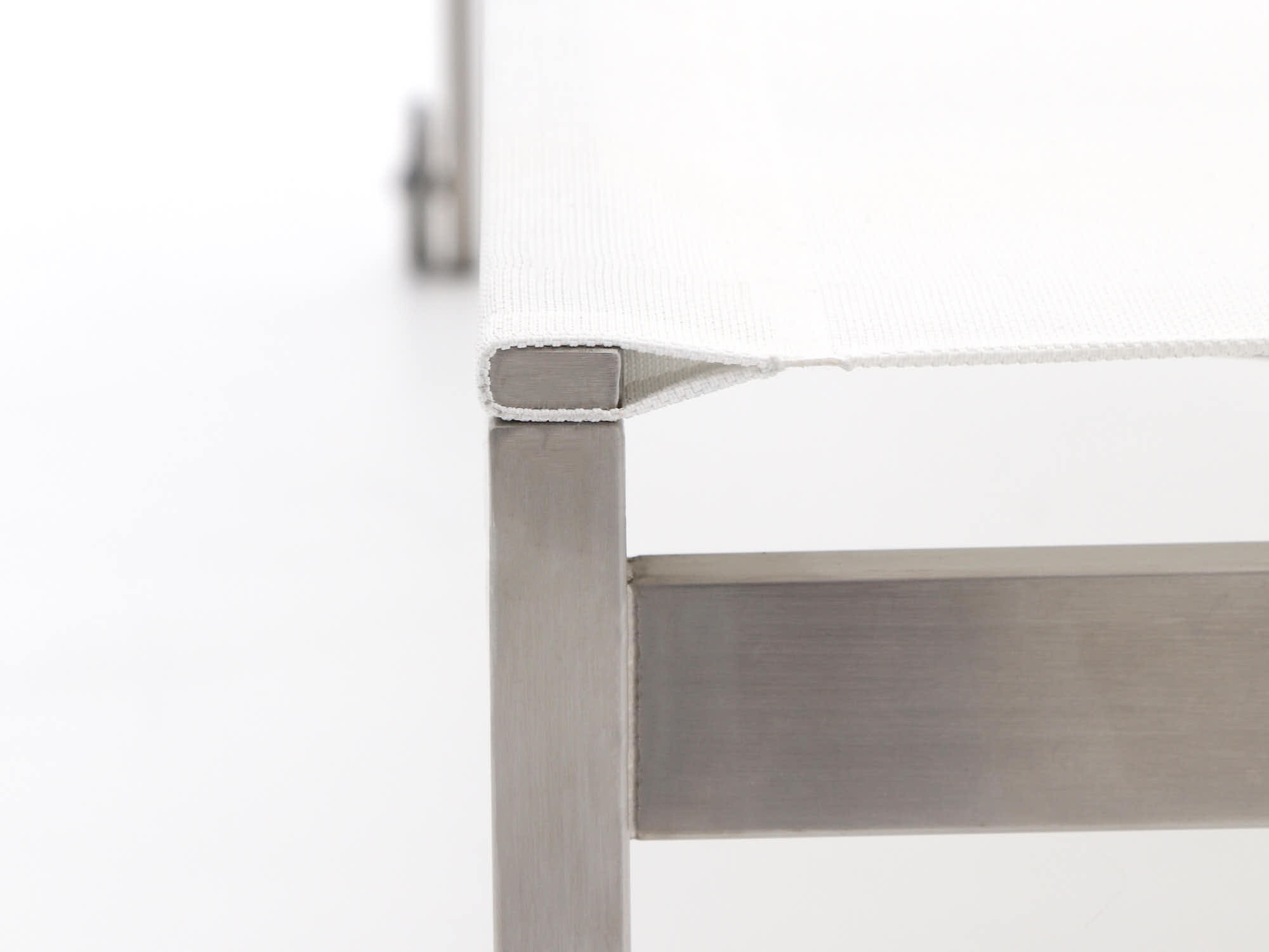 RVS frame: Het frame van roestvast staal is sterk en ideaal voor buitengebruik. Dit materiaal is relatief zwaar en zorgt ervoor dat je ligbed stevig op zijn plek blijft staan.