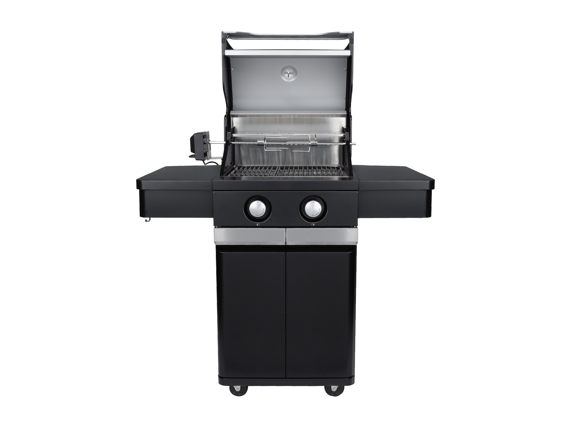 De twee hoofdbranders van 3,6 kW zorgen voor een snelle en gelijkmatige verhitting. Zo verdeel je eenvoudig verschillende temperatuurzones op je grill, bijvoorbeeld een hete zone voor het dichtschroeien van een steak en een rustigere kant voor het nagaren van groenten of vis. Door het dubbelwandige deksel houd je de warmte beter vast en kun je indirect grillen, ideaal voor grotere stukken vlees die wat meer tijd nodig hebben.