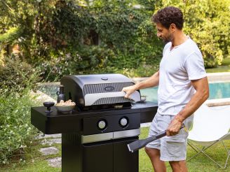 • Je zet je gerechten snel op tafel doordat de twee krachtige hoofdbranders de barbecue gelijkmatig verhitten
