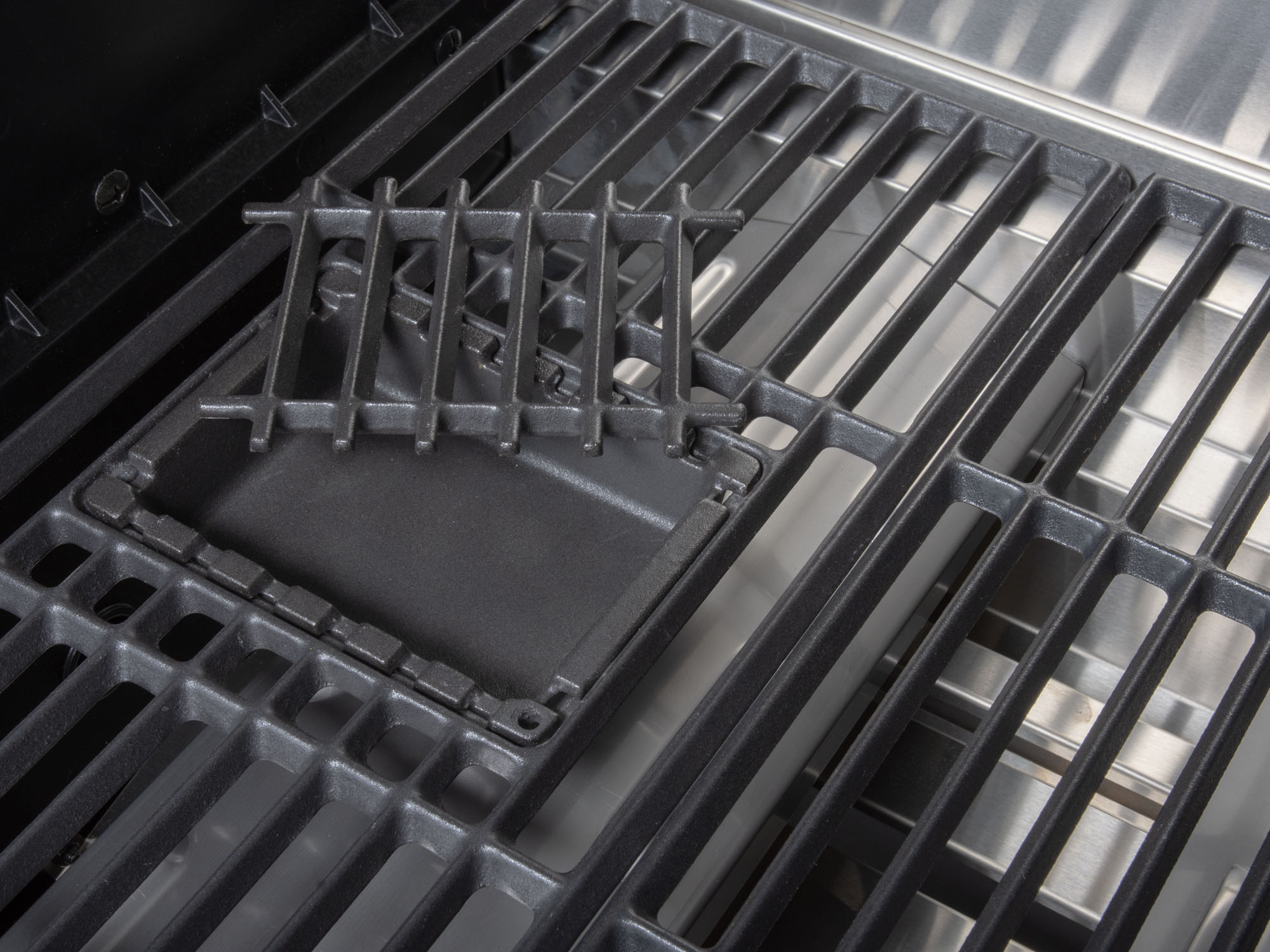 • Dankzij de gietijzeren grillroosters met ingebouwde smokerbox voeg je eenvoudig extra rooksmaak toe met houtsnippers