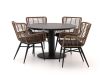 De Intenso Asti/La Fonte dining tuinset is als een goede vriend die altijd klaarstaat voor een gezellig etentje in de buitenlucht. Met zijn ronde tafel van 120 cm doorsnee biedt hij precies genoeg ruimte voor vier personen om comfortabel te dineren. Het tafelblad van HPL in een natuurlijke leisteenlook is niet alleen stijlvol, maar ook kras- en vlekbestendig. De stoelen zijn gemaakt van handgevlochten wicker en hebben een stevig aluminium frame, wat betekent dat ze zowel comfortabel als duurzaam zijn. En laten we de meegeleverde kussens niet vergeten – die zorgen ervoor dat je urenlang kunt natafelen zonder dat je het doorhebt.