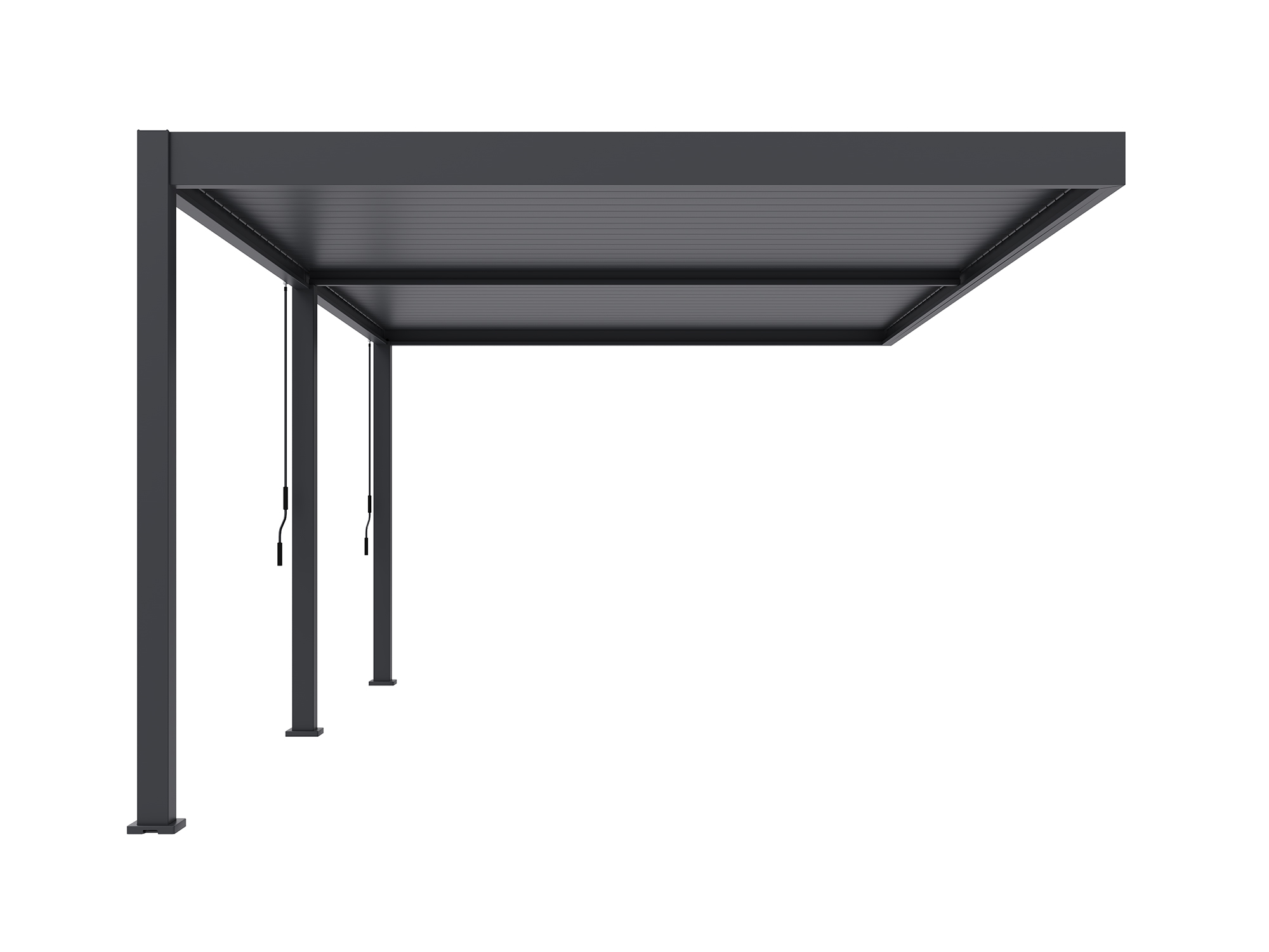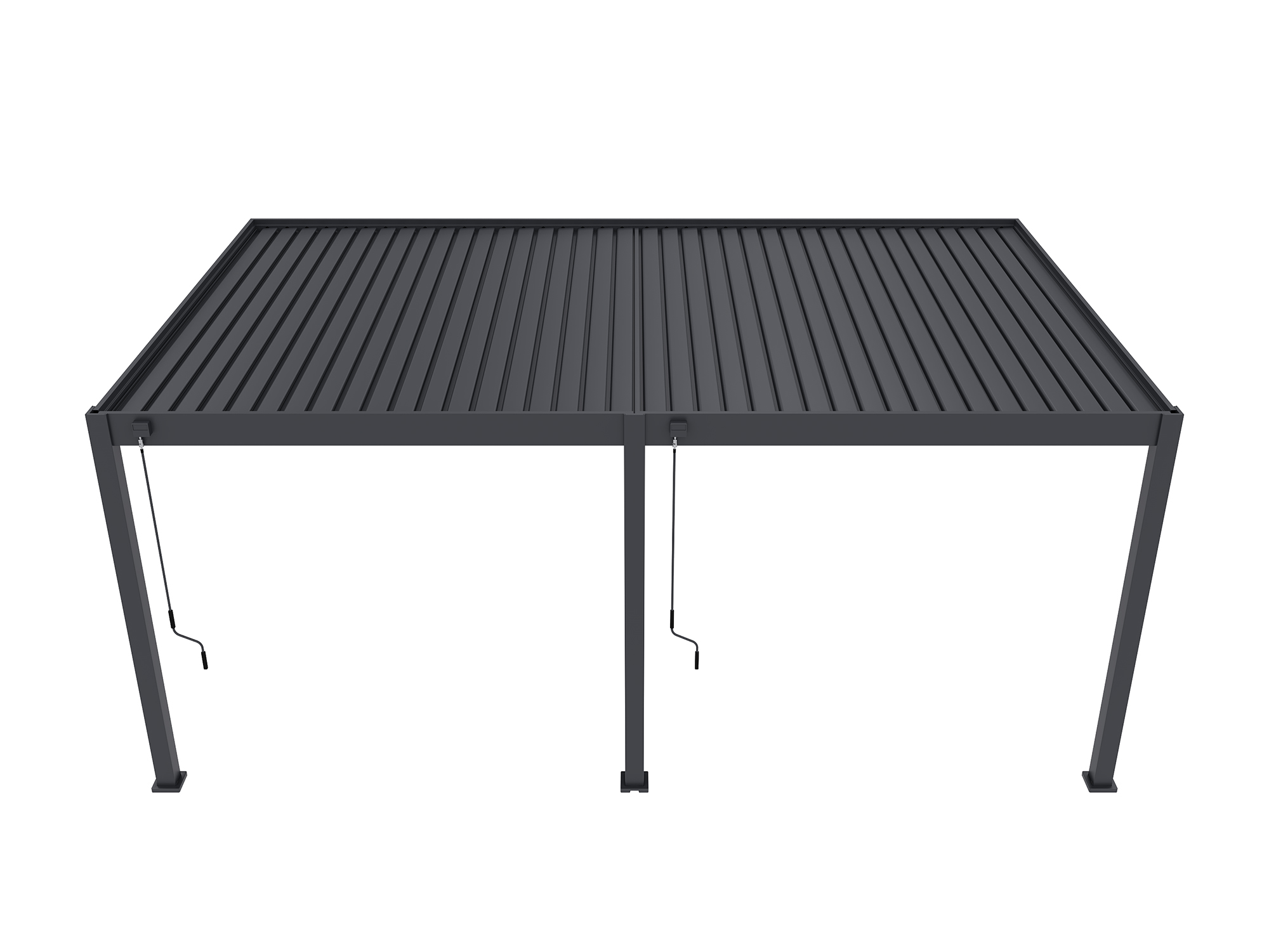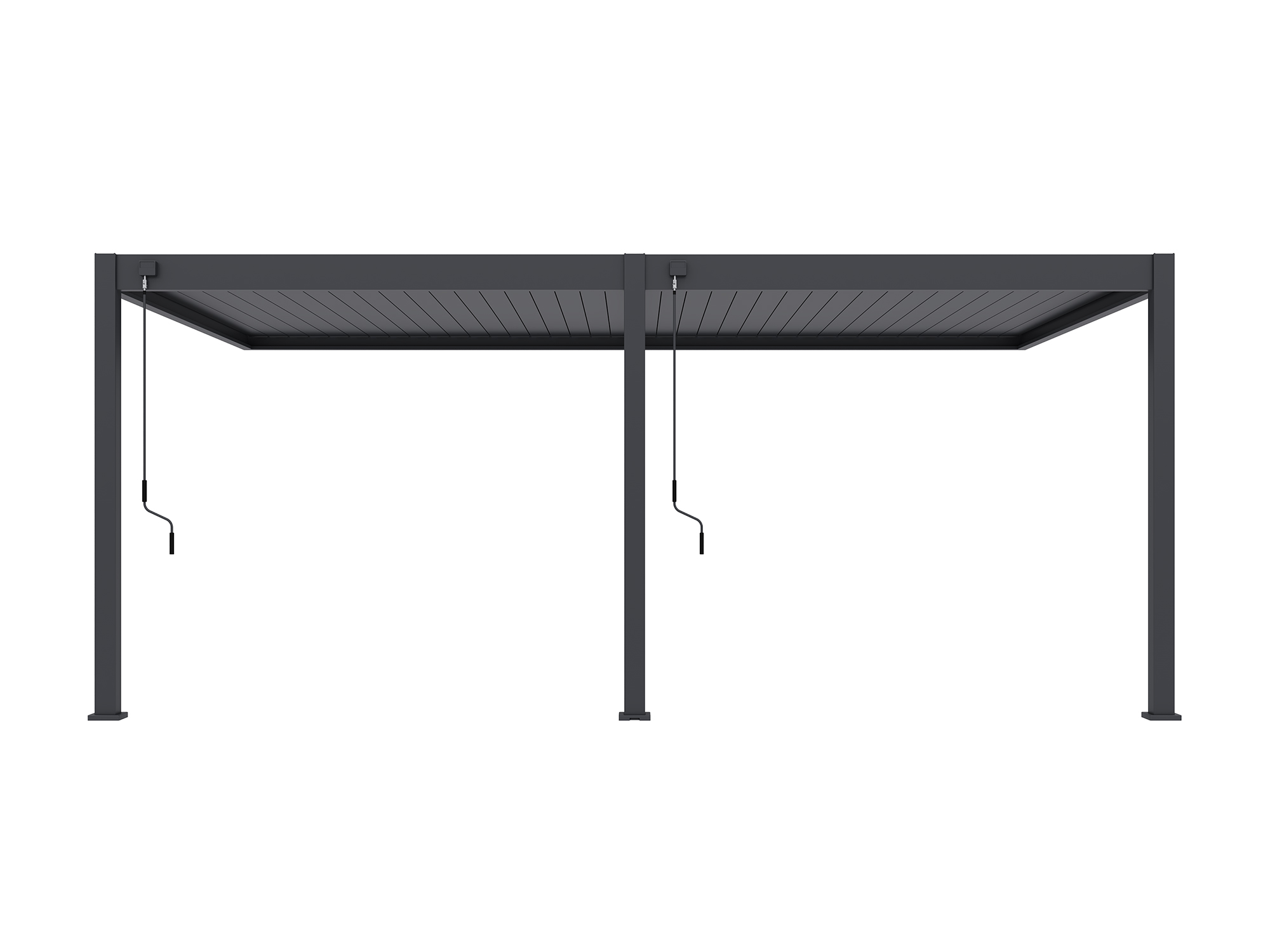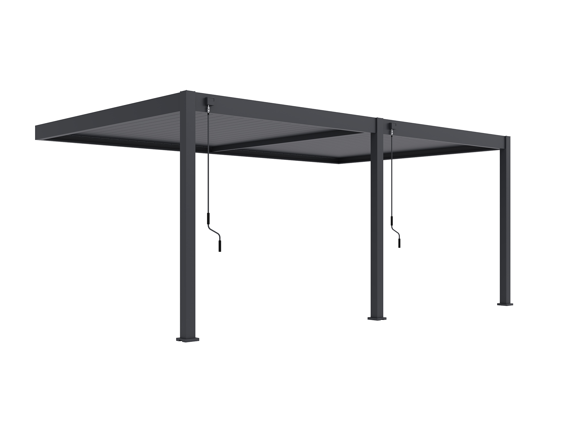Je kantelt de lamellen handmatig tot 135°, zodat je zelf bepaalt hoeveel zon, schaduw of frisse lucht je doorlaat. Precies goed voor elk moment van de dag.