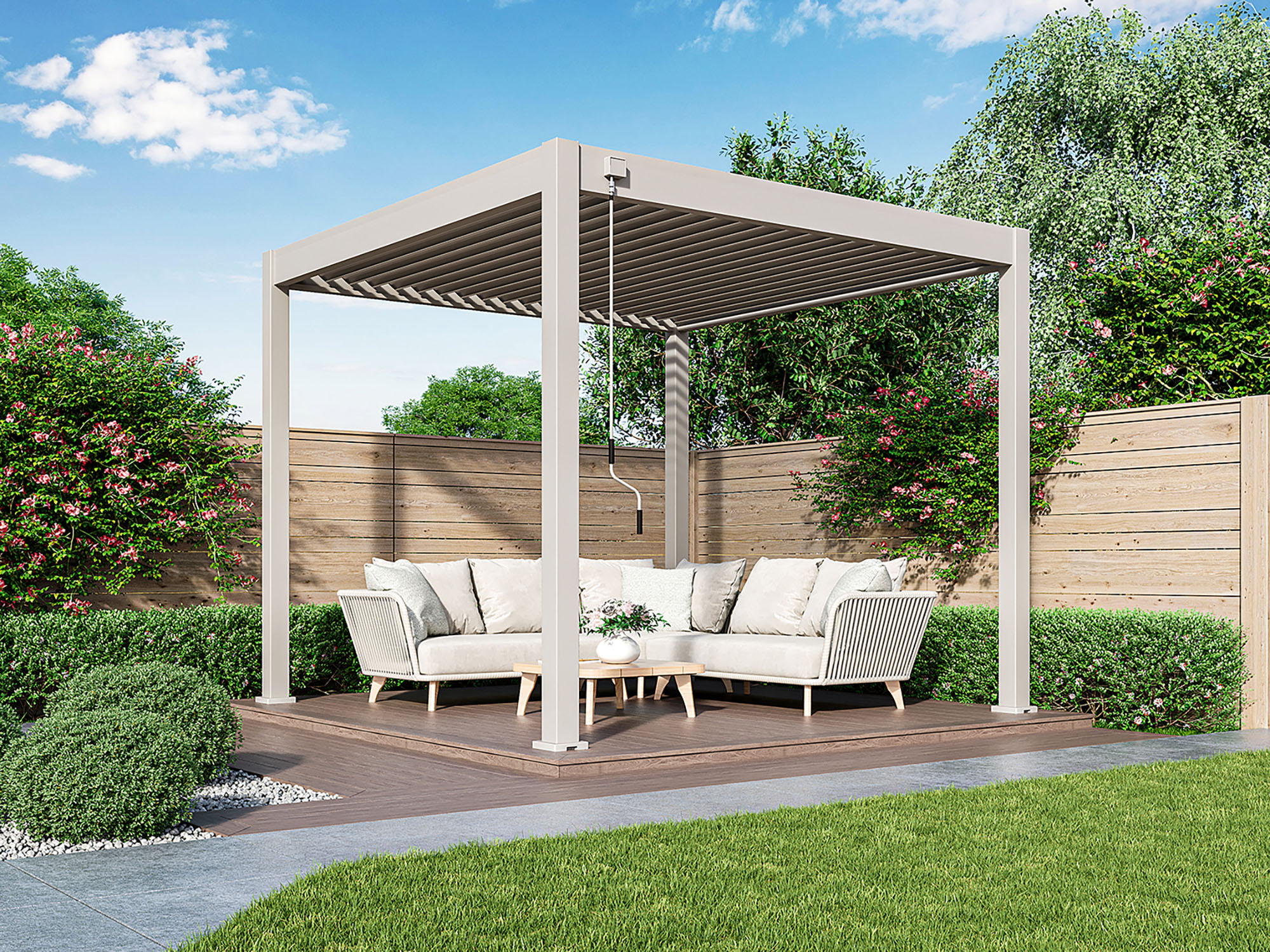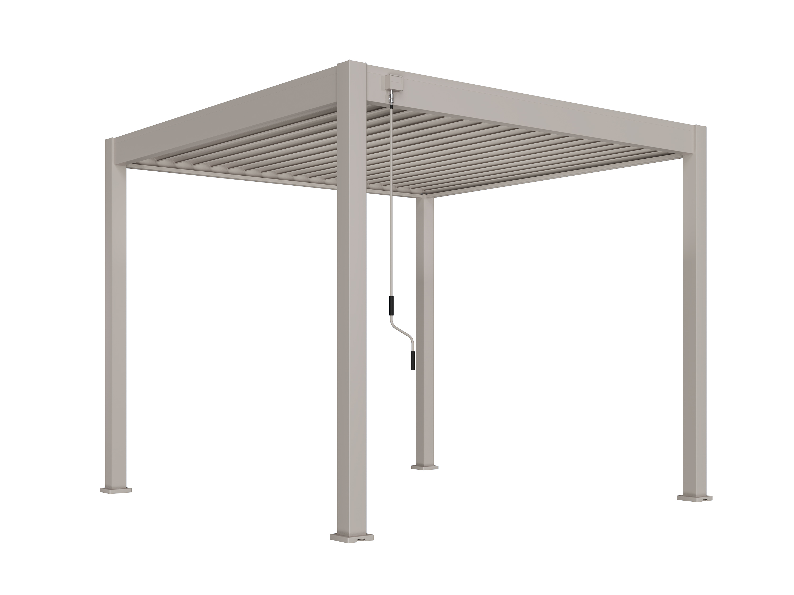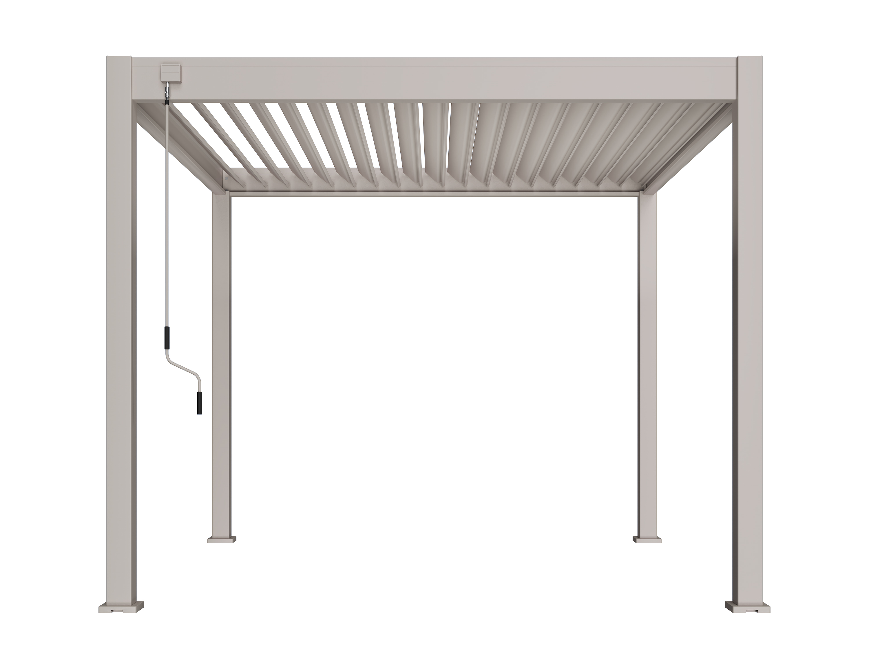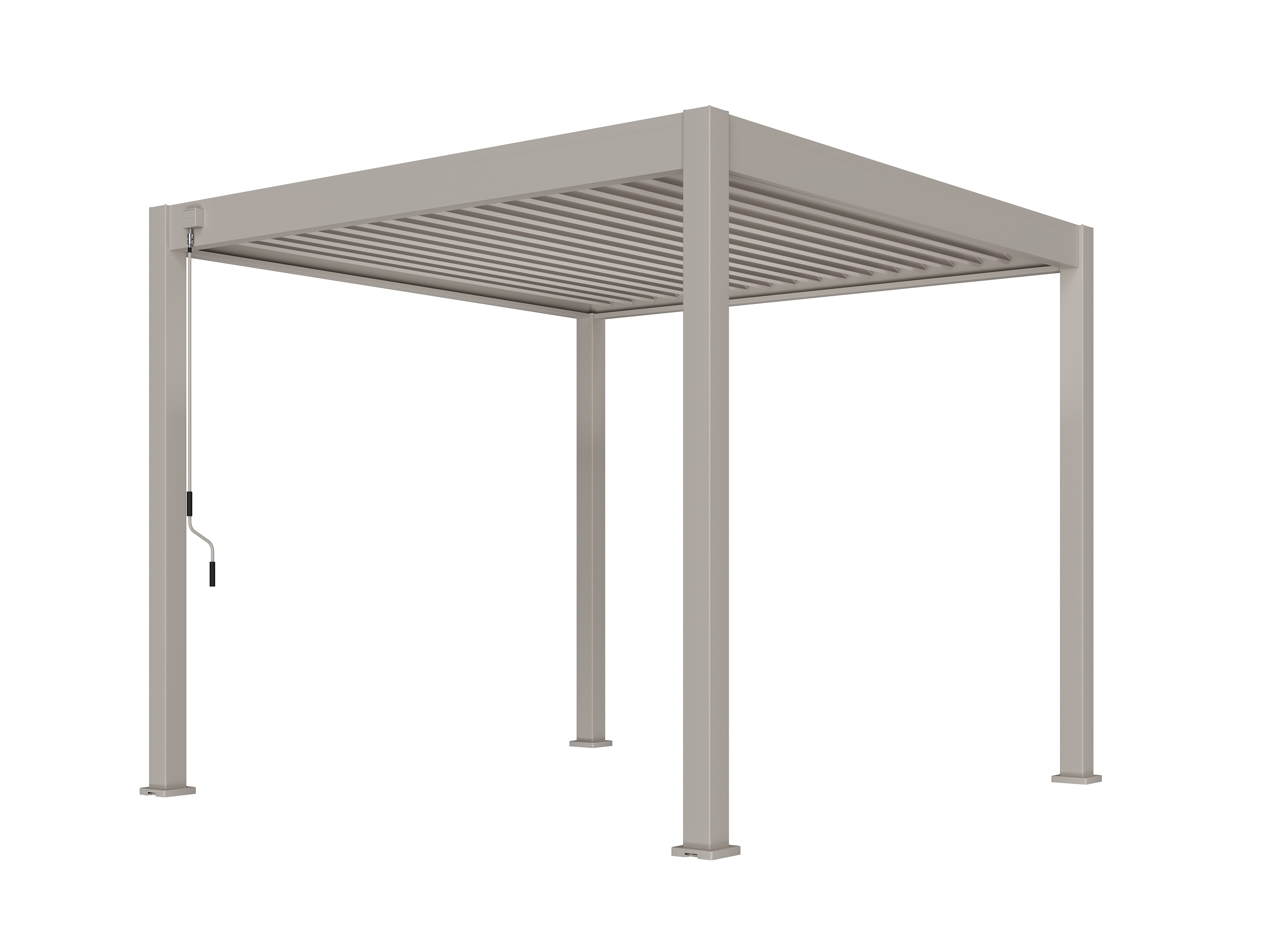 Je kantelt de lamellen handmatig tot 135°, zodat je zelf bepaalt hoeveel zon, schaduw of frisse lucht je doorlaat. Precies goed voor elk moment van de dag.