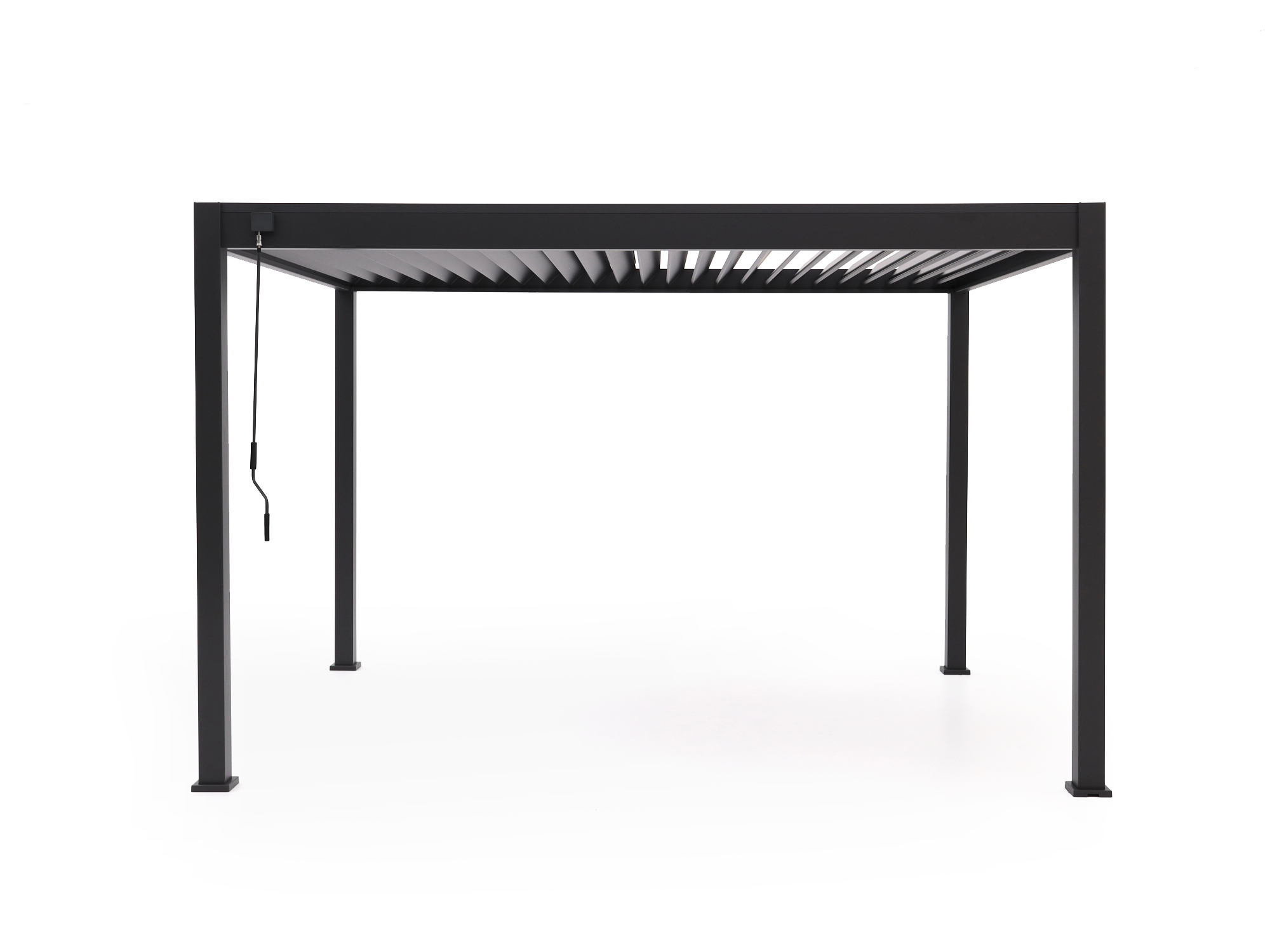 Je kantelt de lamellen handmatig tot 135°, zodat je zelf bepaalt hoeveel zon, schaduw of frisse lucht je doorlaat. Precies goed voor elk moment van de dag.