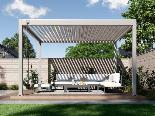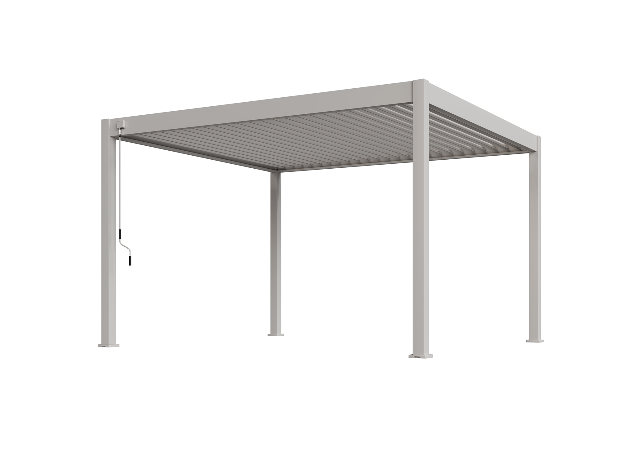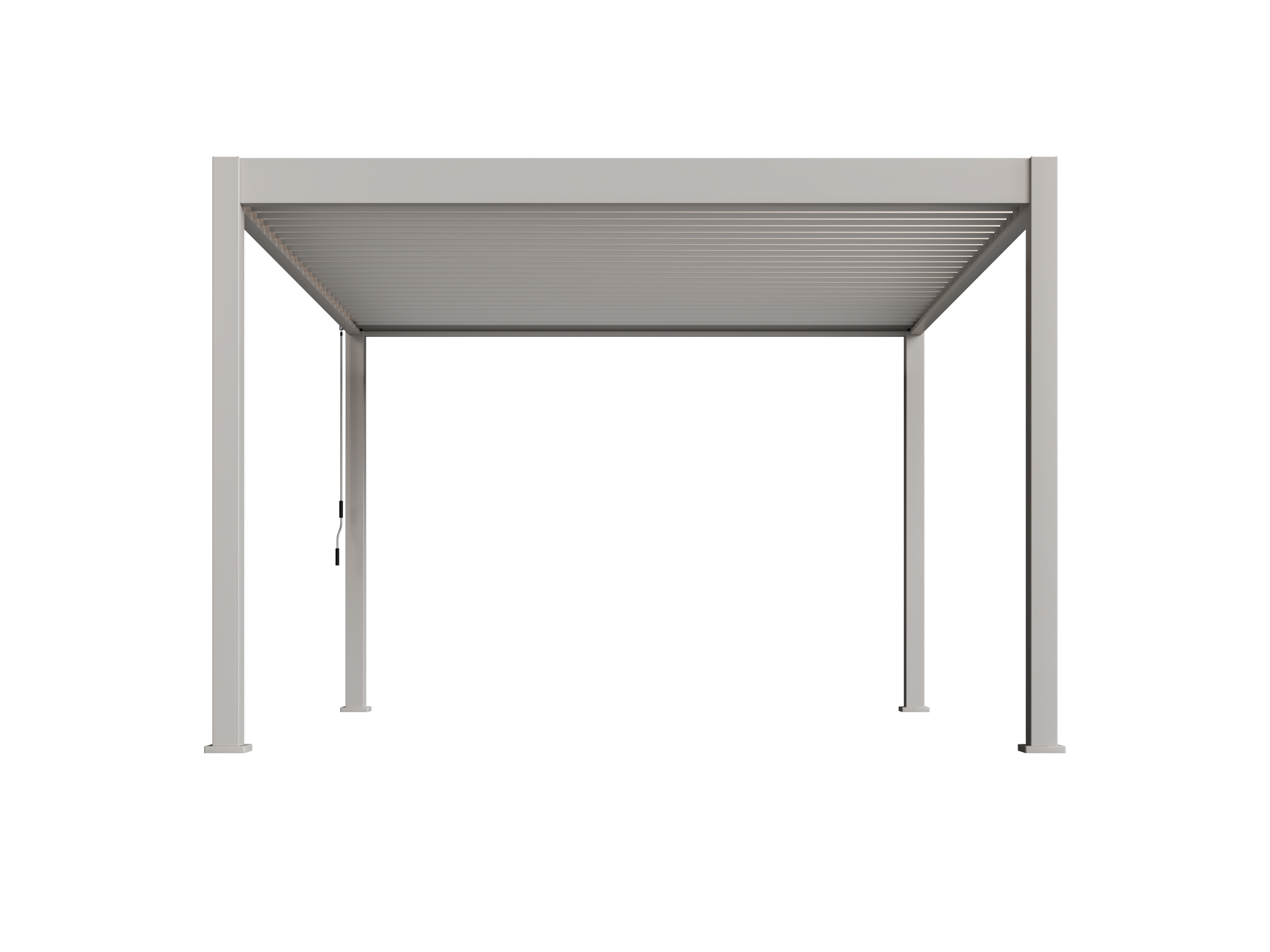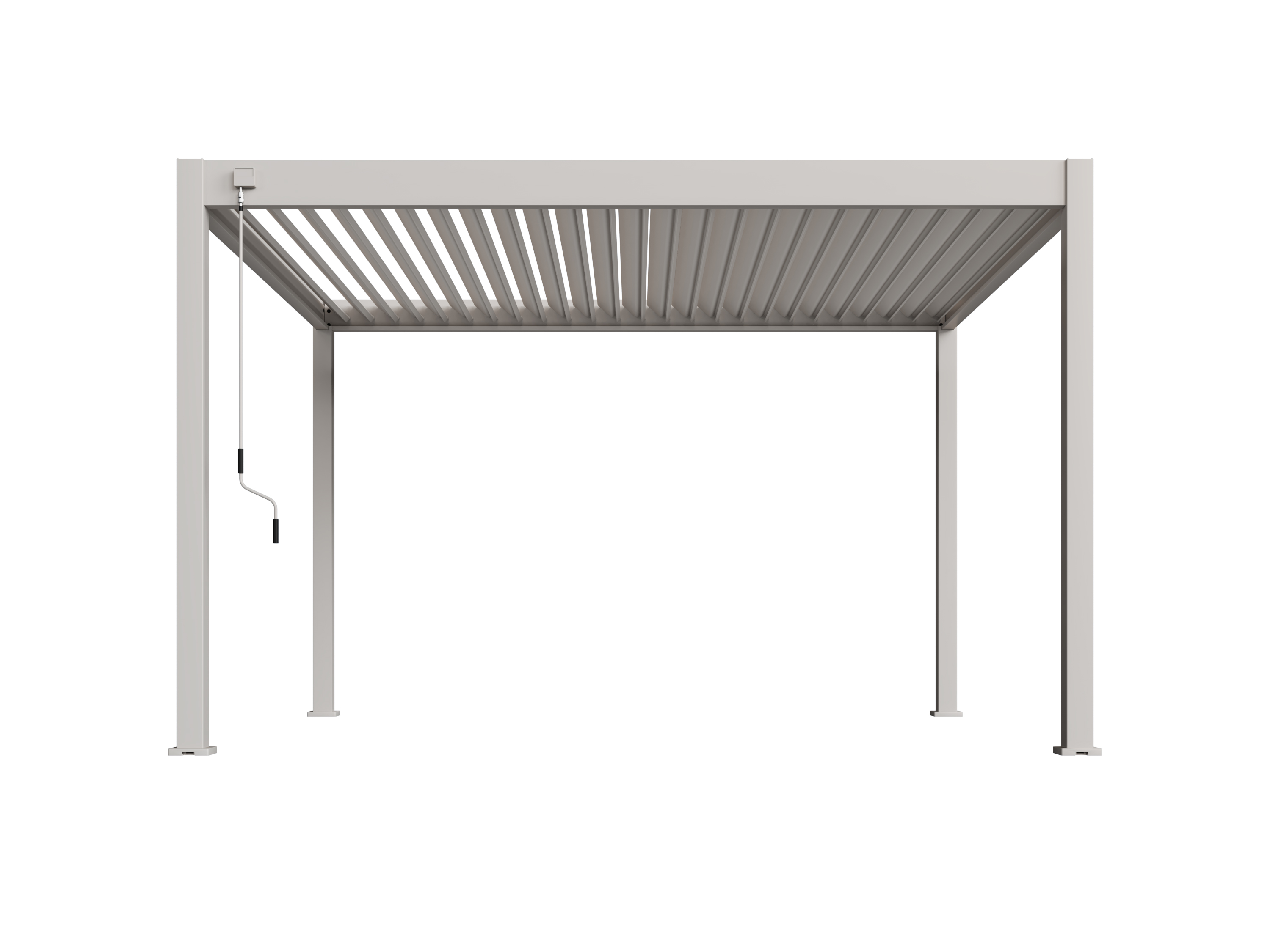 Je kantelt de lamellen handmatig tot 135°, zodat je zelf bepaalt hoeveel zon, schaduw of frisse lucht je doorlaat. Precies goed voor elk moment van de dag.