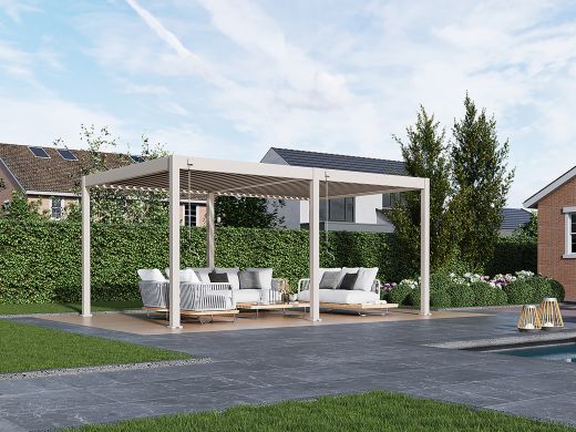 Je kantelt de lamellen handmatig tot 135°, zodat je zelf bepaalt hoeveel zon, schaduw of frisse lucht je doorlaat. Precies goed voor elk moment van de dag.