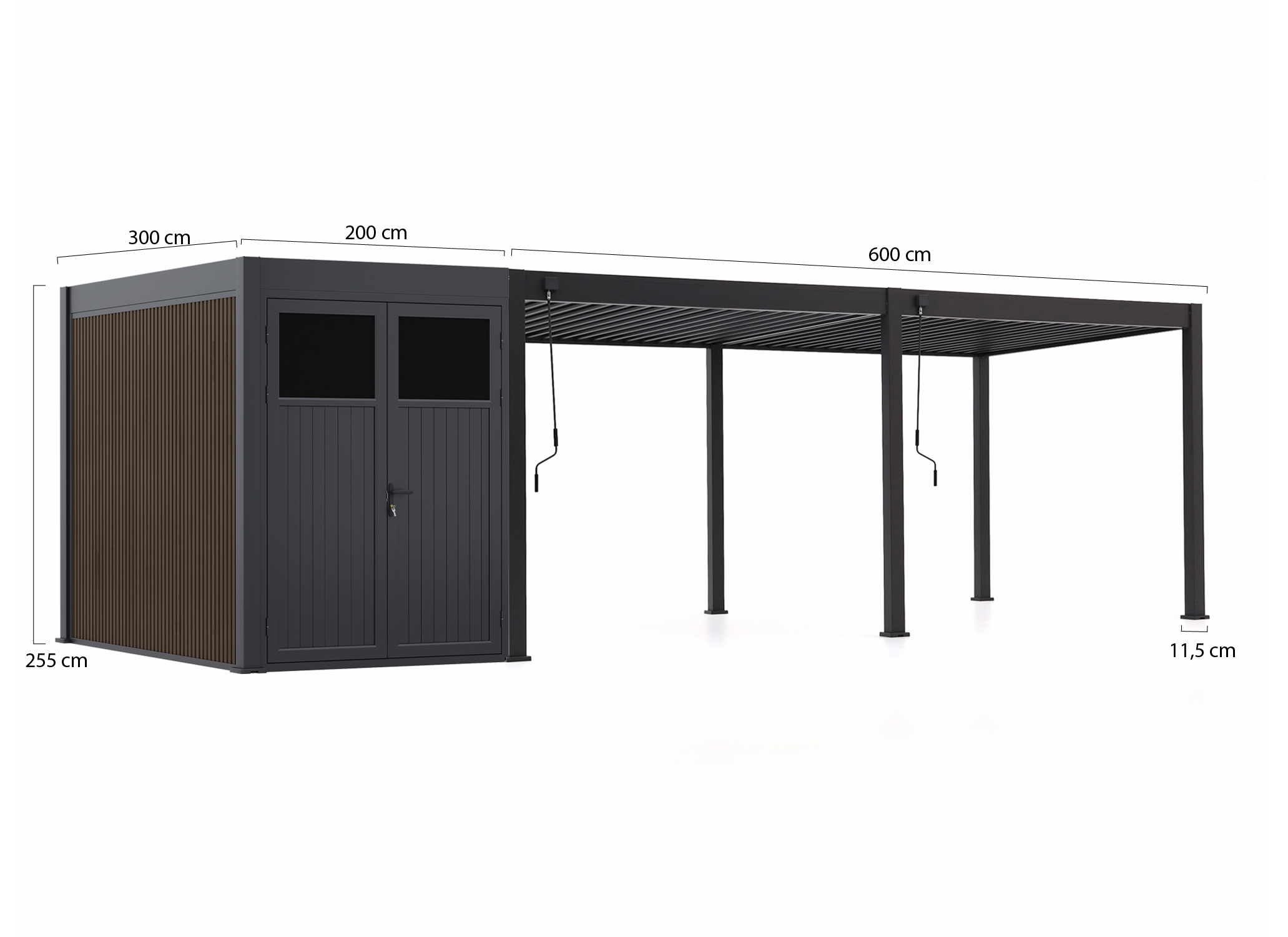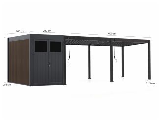 Cedrino Pergola 600x300x255cm incl. Berging 300x200cm aanpassen