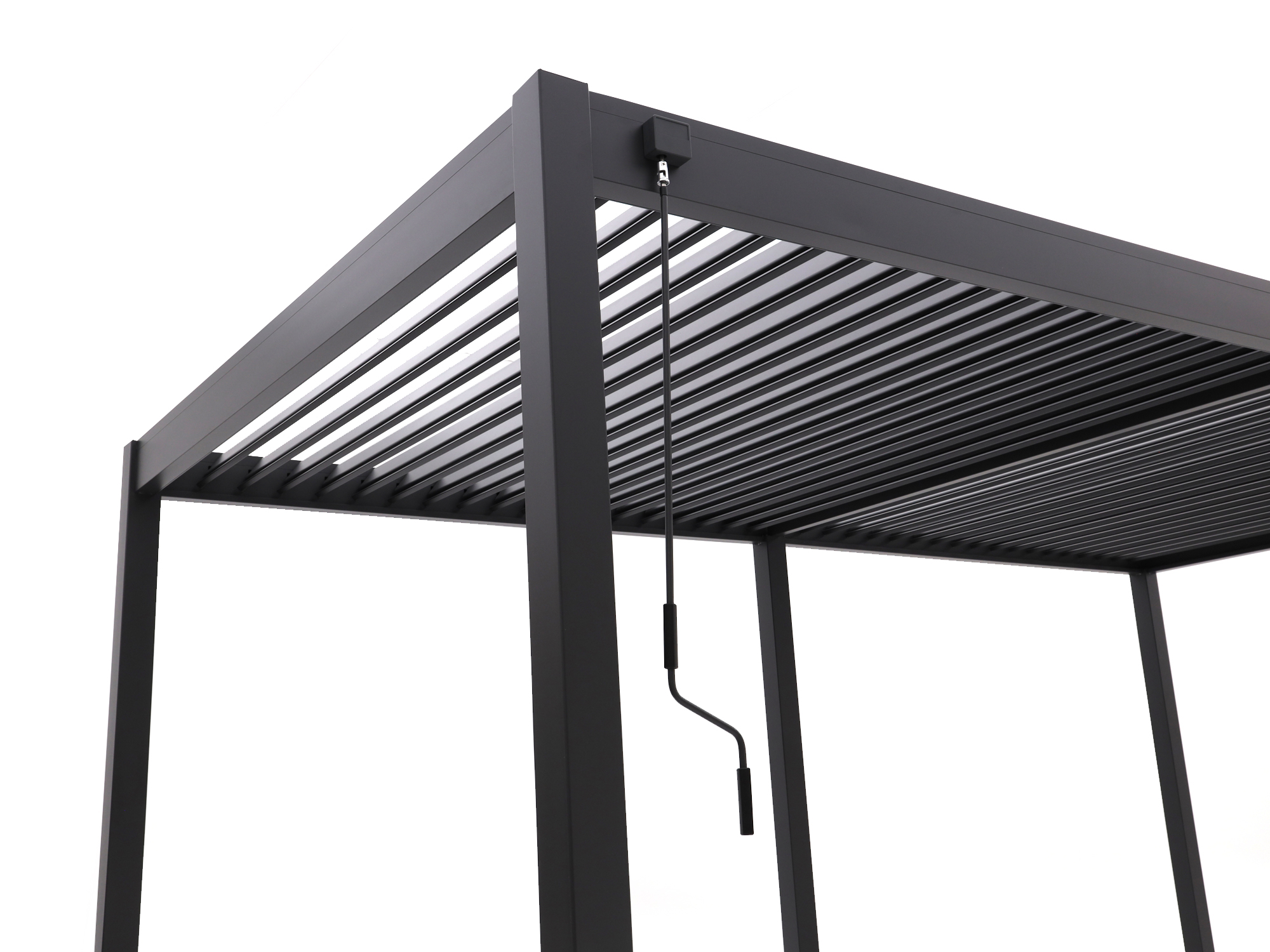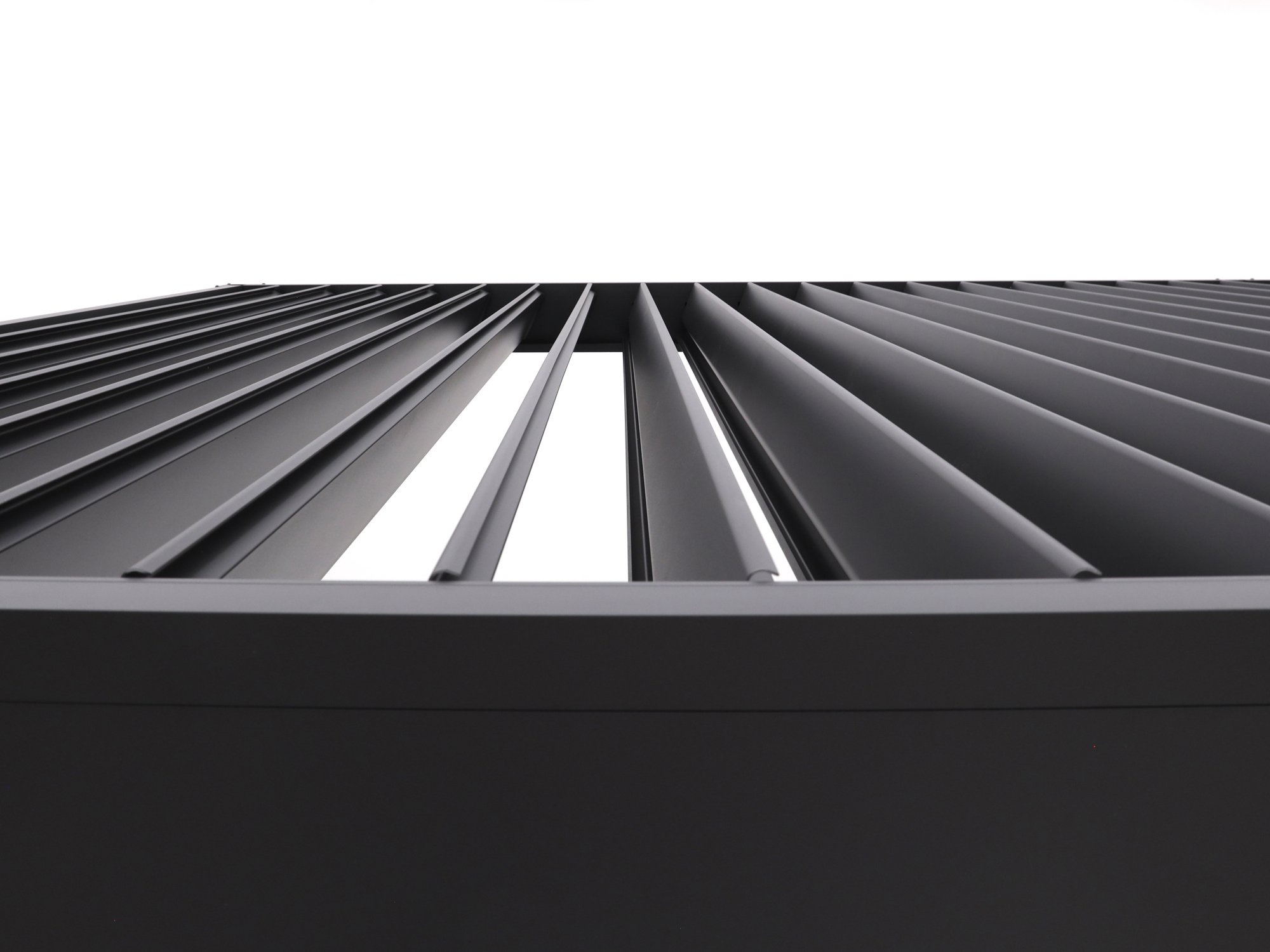 Je kantelt de lamellen handmatig tot 135°, zodat je zelf bepaalt hoeveel zon, schaduw of frisse lucht je doorlaat. Precies goed voor elk moment van de dag.