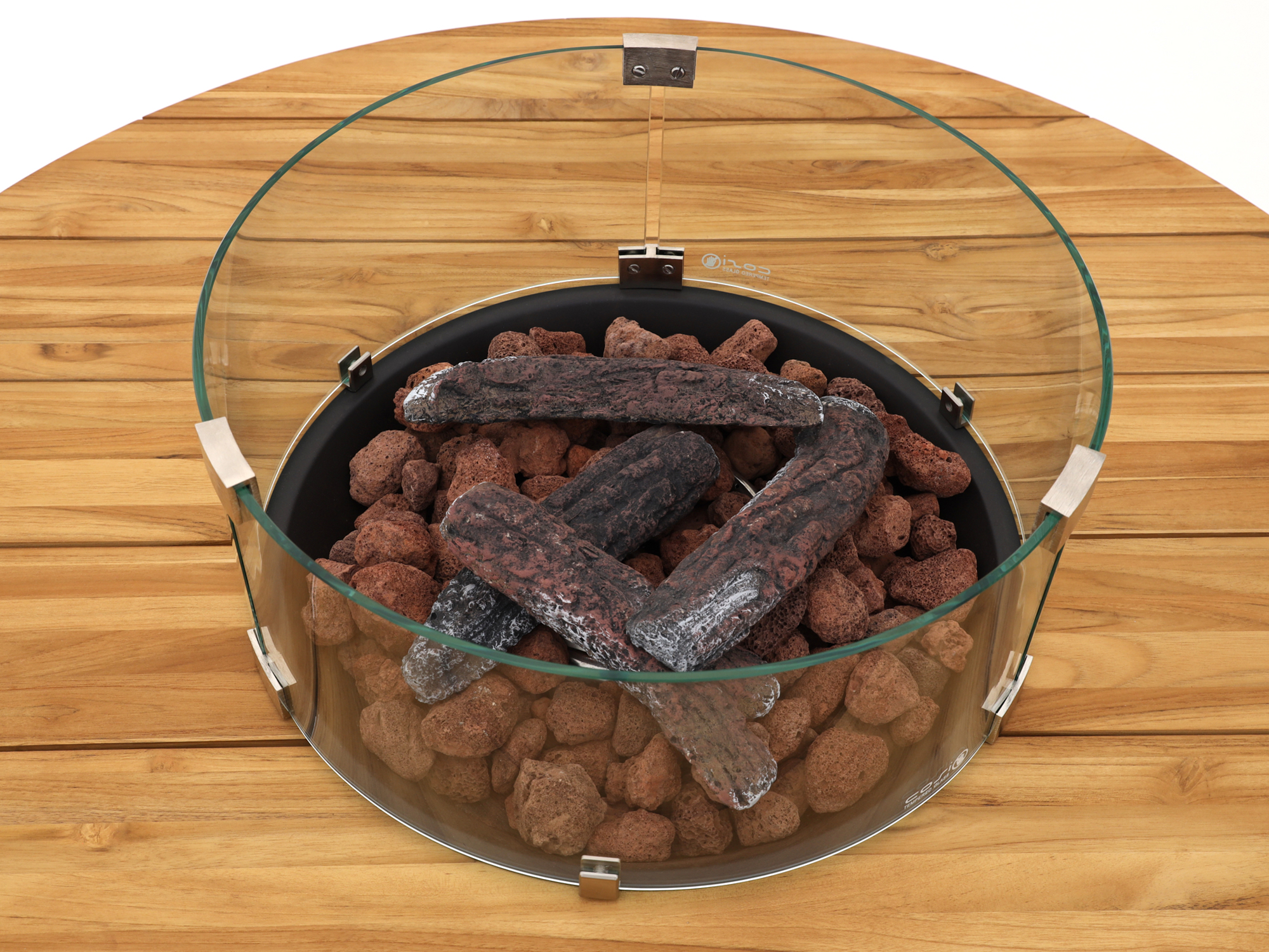 Inclusief glasombouw: De glasombouw beschermt tegen tocht en voorkomt dat voorwerpen in de vlammen terechtkomen, zodat je zorgeloos kunt genieten van de warmte.
