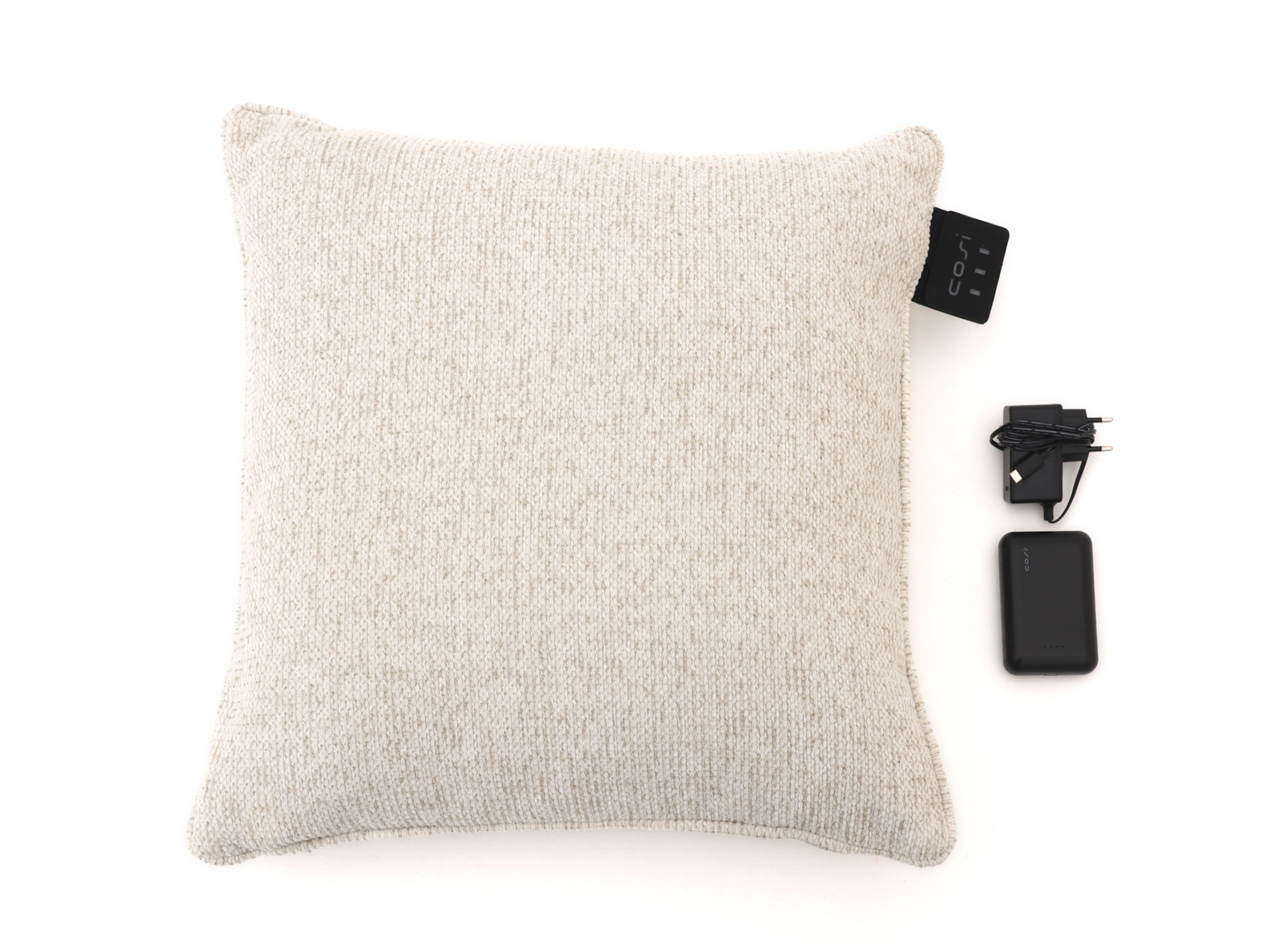 - Warmte instellen – Houd de Q-knop een paar seconden ingedrukt om het kussen aan te zetten. Druk nogmaals om de warmtestand te kiezen.