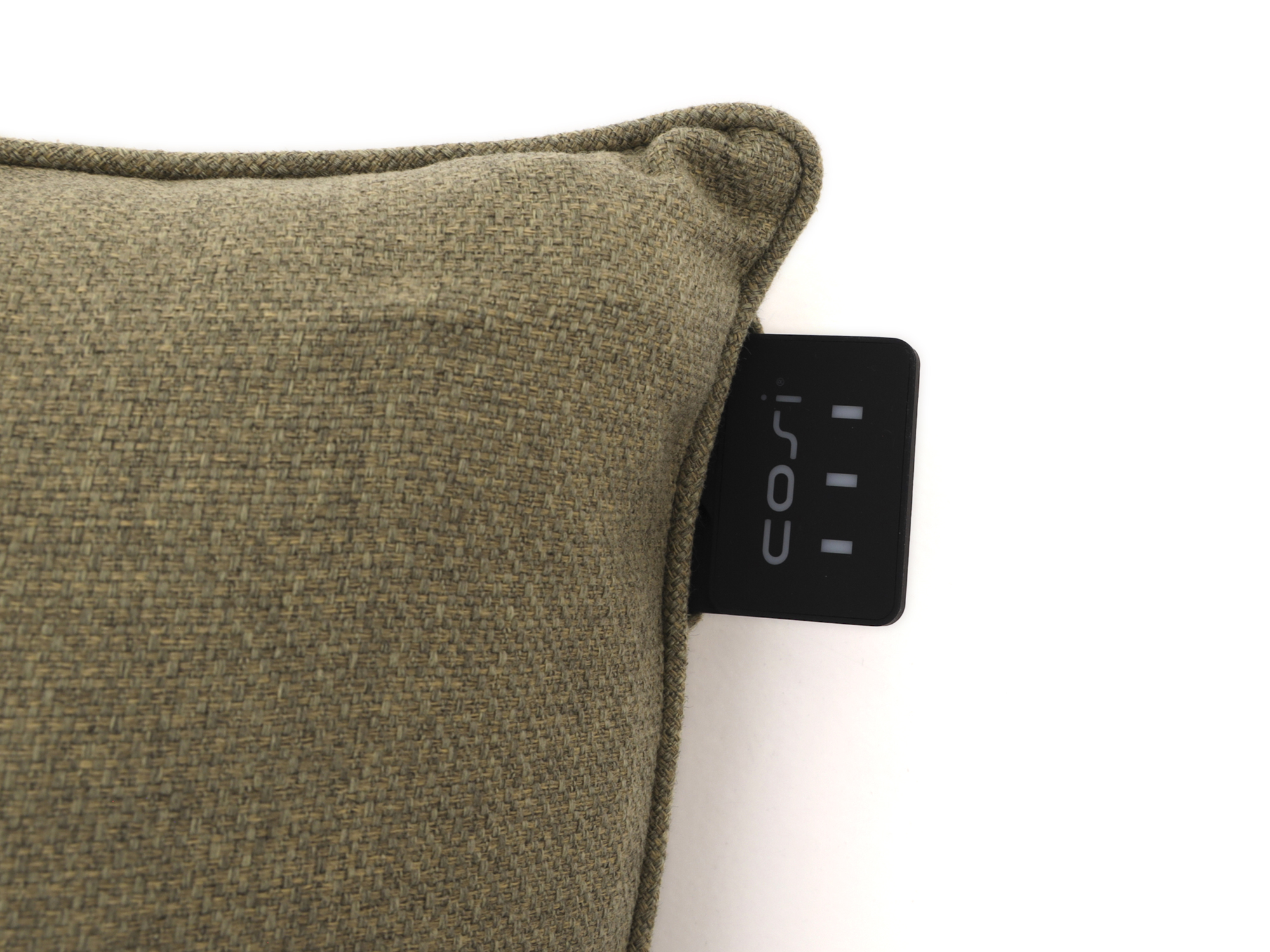 - Warmte instellen – Houd de Q-knop een paar seconden ingedrukt om het kussen aan te zetten. Druk nogmaals om de warmtestand te kiezen.