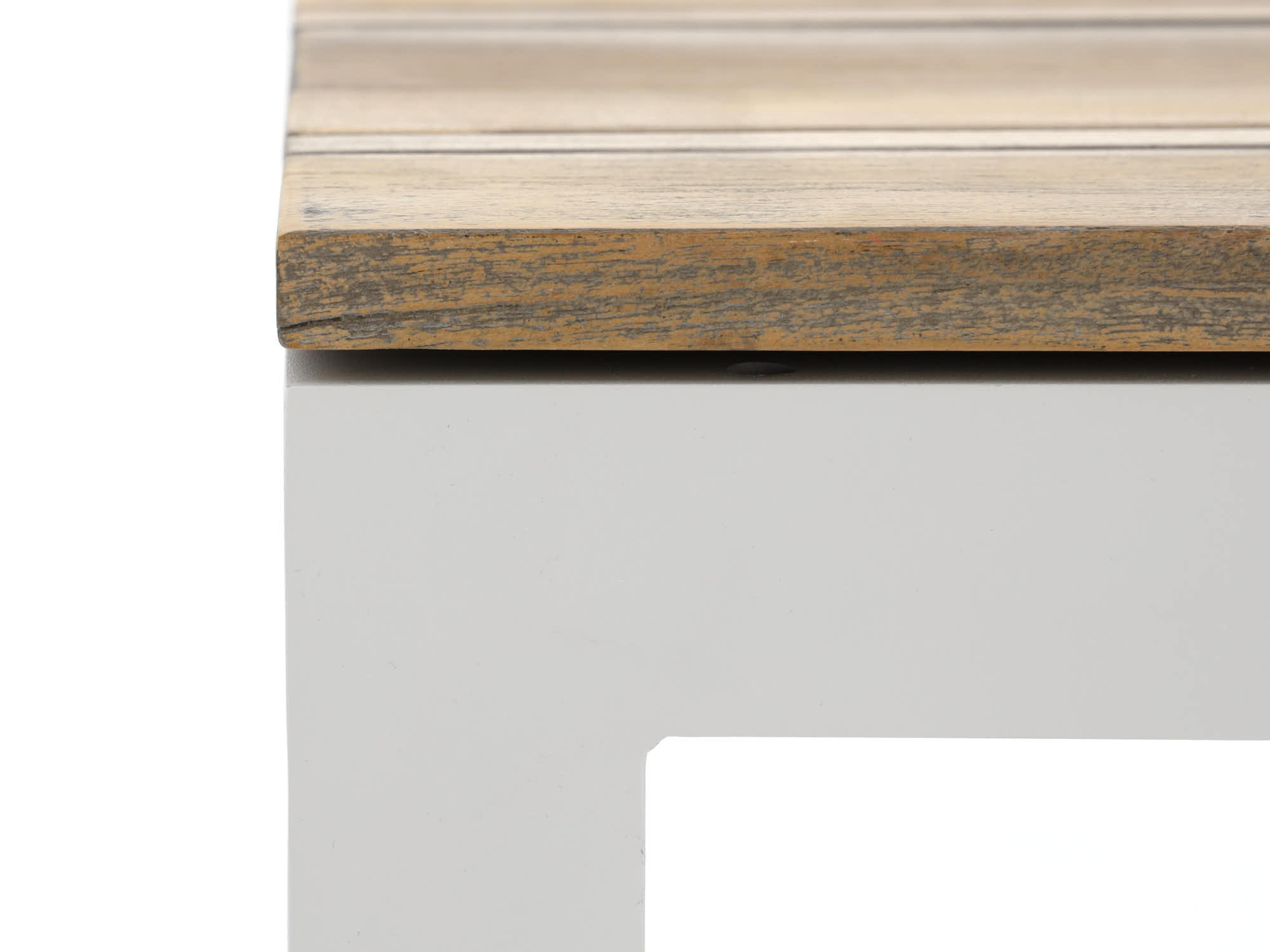 • Old Teak Greywash blad: Dit teakhouten blad is bestand tegen alle weersomstandigheden en biedt een natuurlijke, robuuste uitstraling.