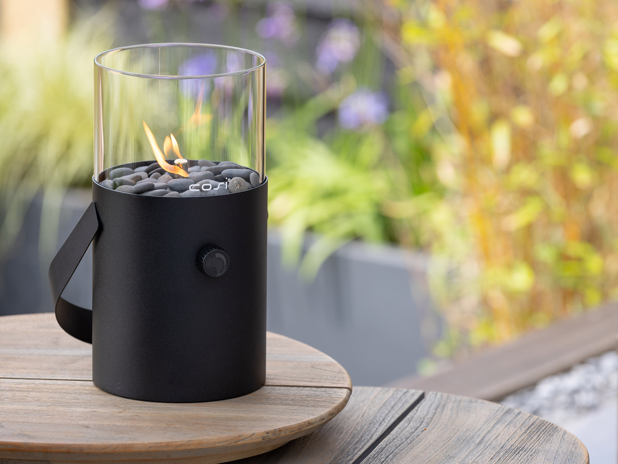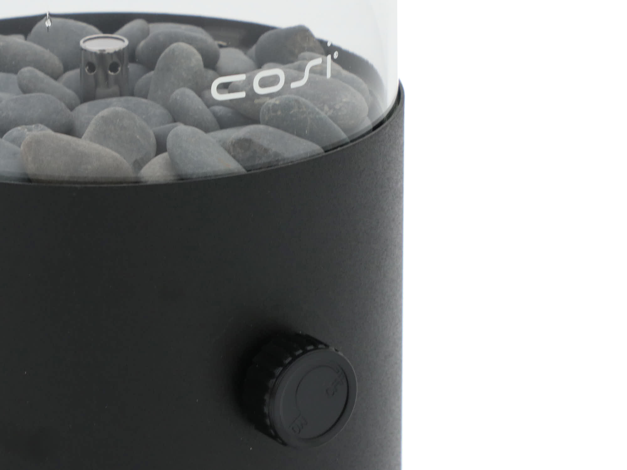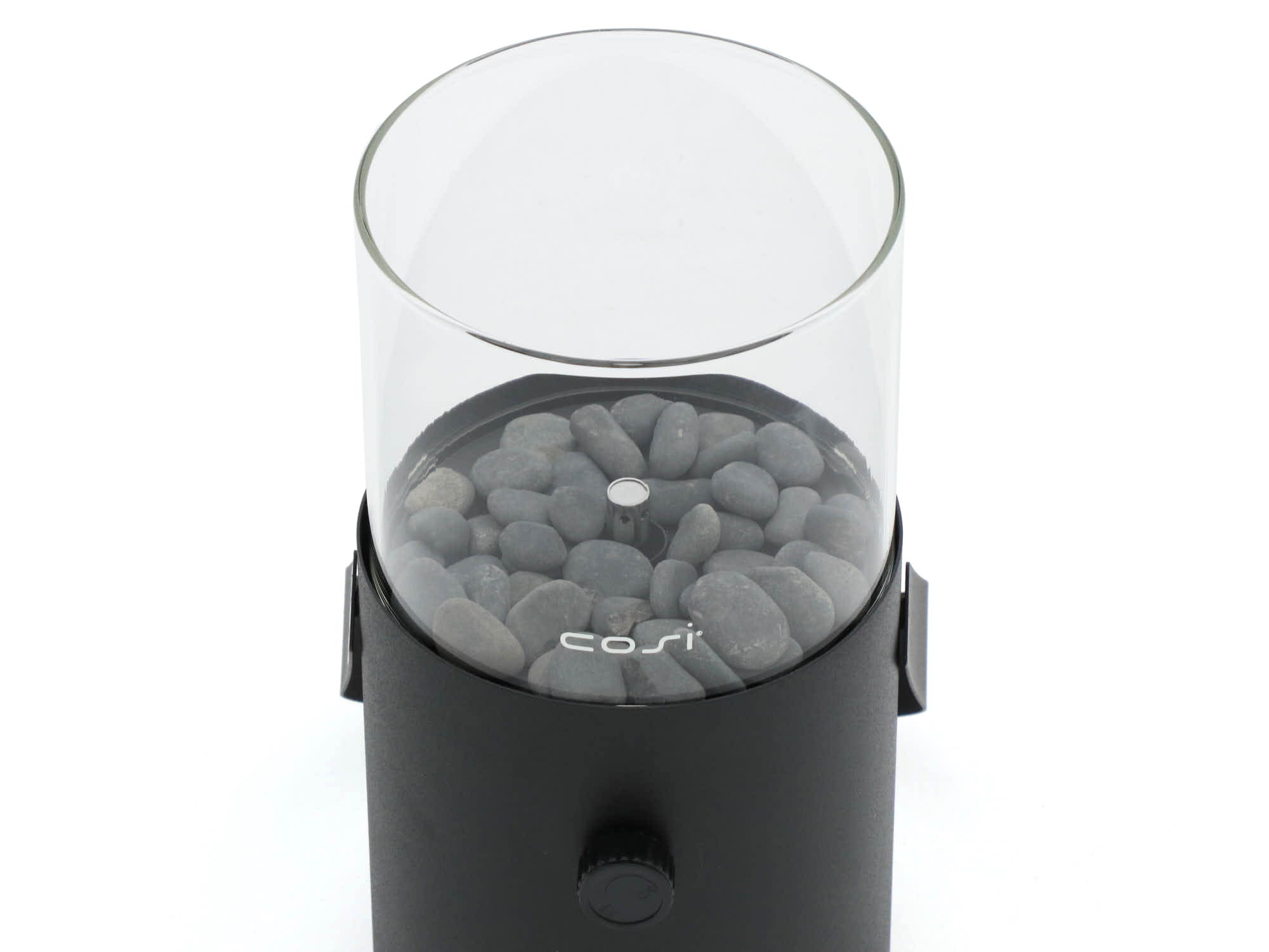 Deze gaslantaarn werkt op een universele 190 gram gascartouche, die eenvoudig verkrijgbaar is bij de bouwmarkt. De bediening is simpel: draai het gasblikje onderaan vast, steek de vlam aan en regel de grootte van de vlam met de draaiknop. Gemiddeld brandt de Cosiscoop 5 tot 6 uur op één gascartouche. Dankzij het ingebouwde veiligheidsventiel sluit het gasblikje zichzelf af als dat nodig is, wat extra veiligheid biedt. De meegeleverde grijze kiezelstenen zorgen voor een mooie afwerking.