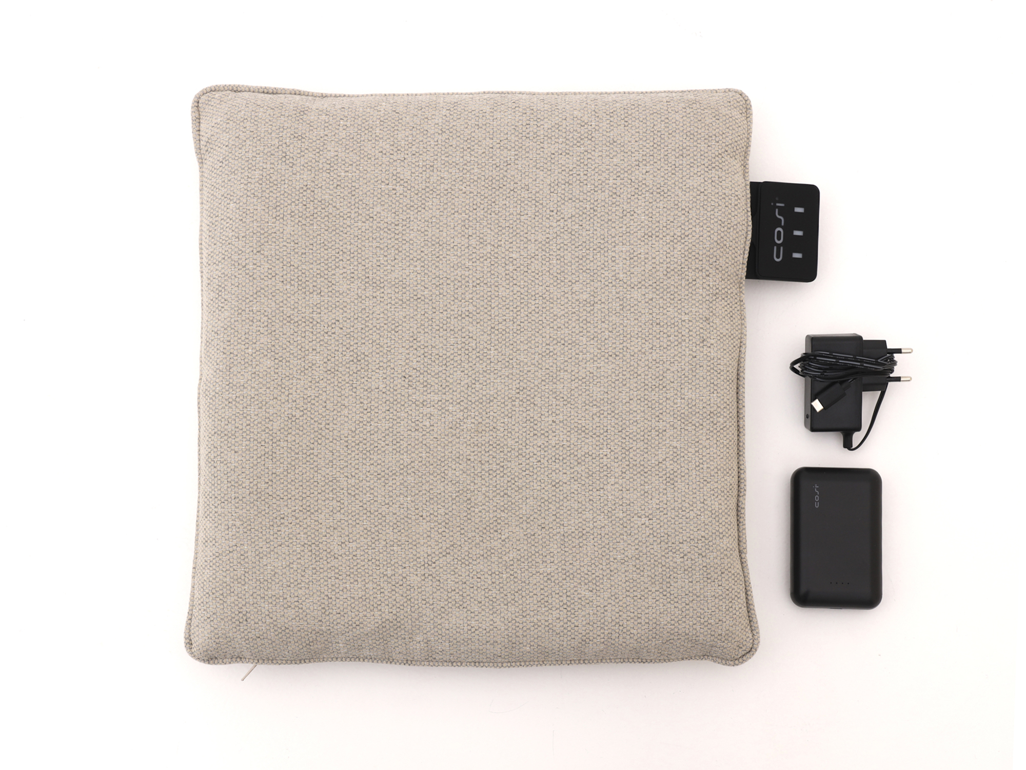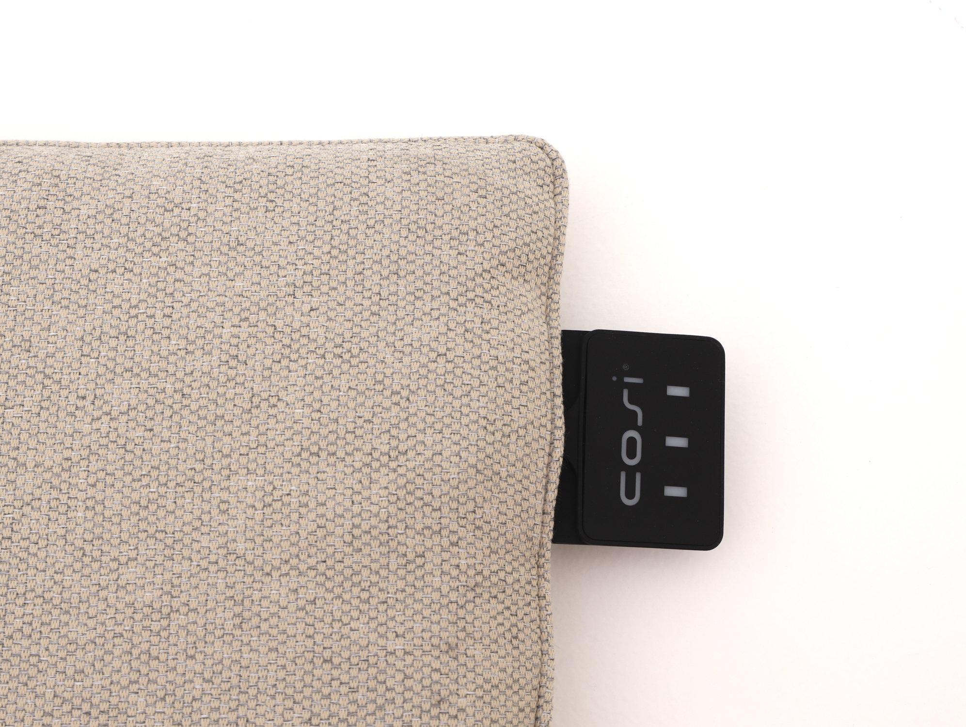 - Warmte instellen – Houd de Q-knop een paar seconden ingedrukt om het kussen aan te zetten. Druk nogmaals om de warmtestand te kiezen.