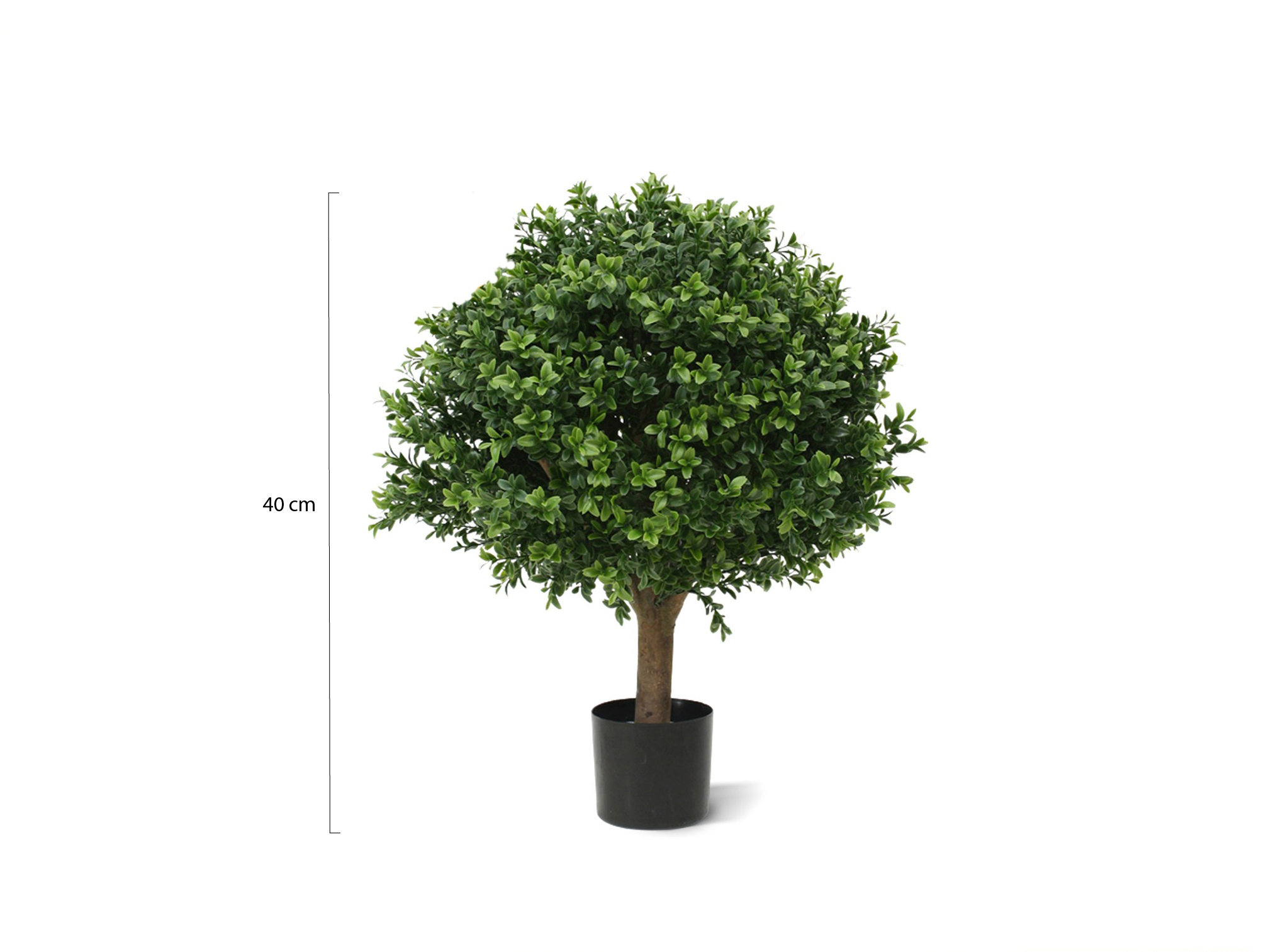 De Designplants Buxus bol kunstplant (h:40cm) is een onderhoudsvrije buxus voor iedereen die wel het groene effect wil, maar geen zin heeft in snoeien, water geven of vergeelde blaadjes. Dankzij de UV bestendige blaadjes kun je ‘m zowel binnen als buiten zetten, zonder dat hij snel verkleurt. De plant wordt geleverd in een compacte pot (potmaat S), zodat je ‘m zo in een overpot of sierpot plaatst. Handig als je een nette, strakke buxusbol zoekt voor bijvoorbeeld je voordeur, balkon of overkapping. Vind je echt hout en een zo natuurlijk mogelijke look belangrijker dan “echte” tuinier skills, dan zit je met deze kunstplant goed.