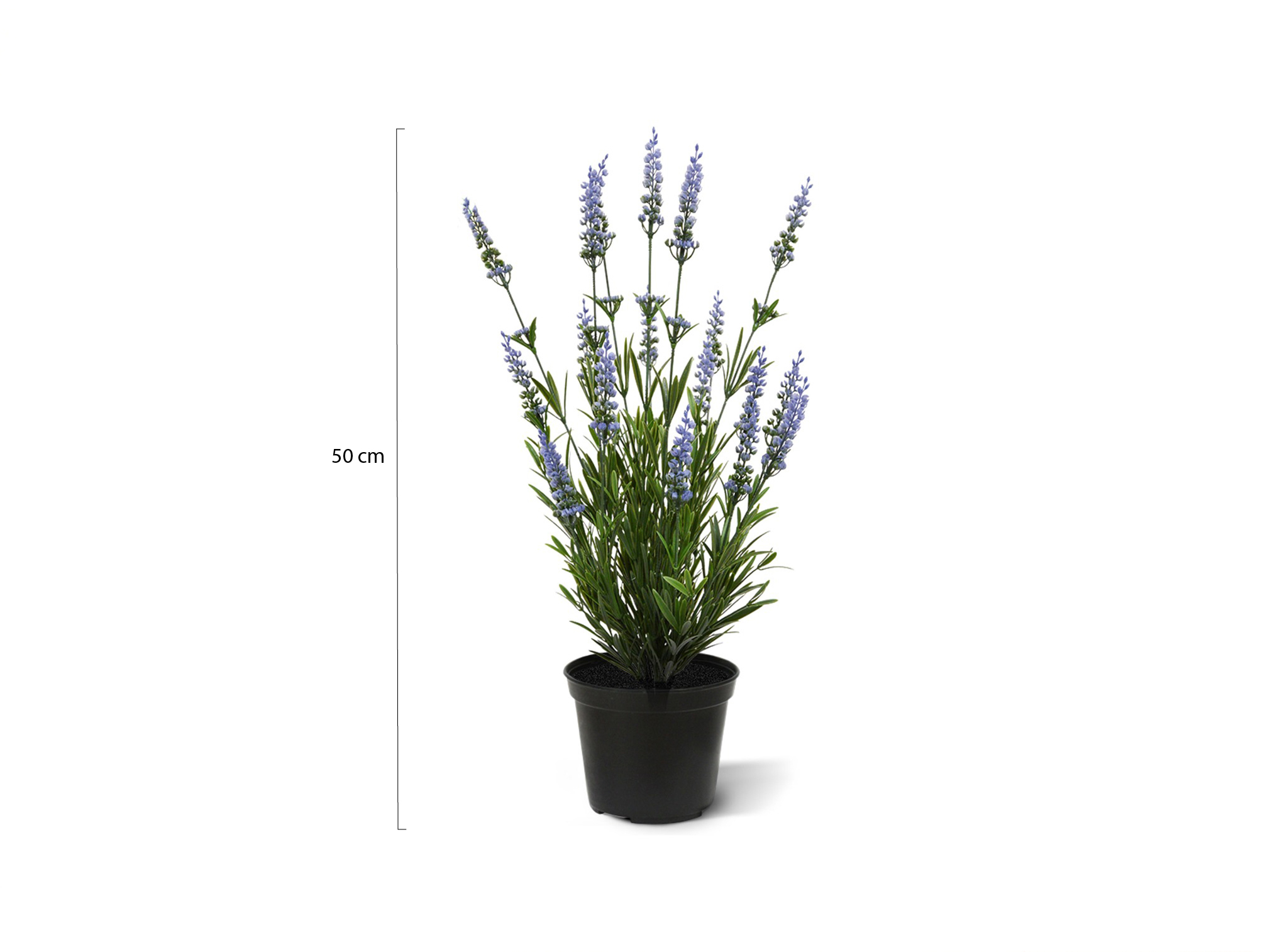 Deze kunstlavendel is ongeveer 53 cm hoog en 20 cm breed, en komt in een zwarte binnenpot van 12 cm doorsnede en 10 cm hoog. Hij past mooi in Luca Lifestyle bloempotten met potmaat S, zodat je snel een kloppende combinatie hebt zonder meetwerk. De plant is geschikt voor binnen en buiten, maar zorg dat water weg kan lopen en zet hem niet los in de grond, zodat er geen water in de zwarte binnenpot blijft staan. Even af en toe afstoffen met een zachte doek is genoeg. Past vooral bij je als je een verzorgde, kleurrijke plant wilt zonder gedoe met water, zon en tuinhandschoenen.