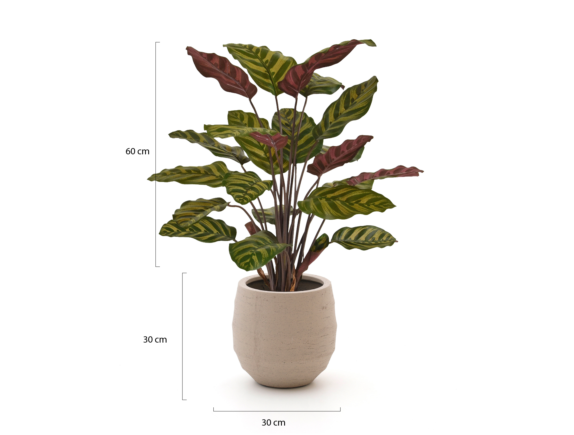 Designplants/Luca Lifestyle Red Calathea Makoyana kunstplant (h:60cm) met Bordo Balloon bloempot aanpassen