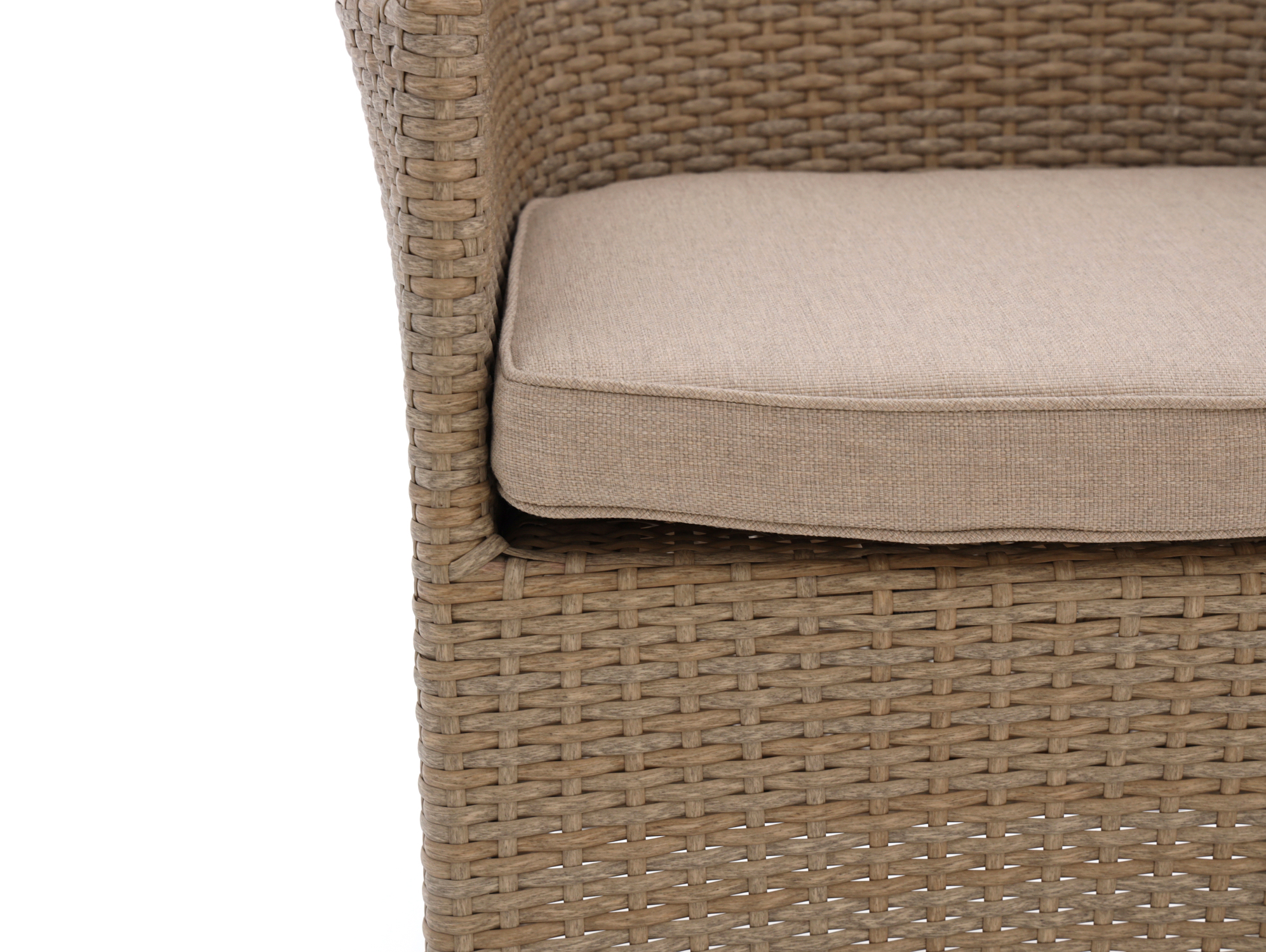 • Wicker stoelen met kussens: De gevlochten stoelen vormen zich prettig naar je lichaam, zodat je ook bij een lange zomeravond lekker blijft zitten.