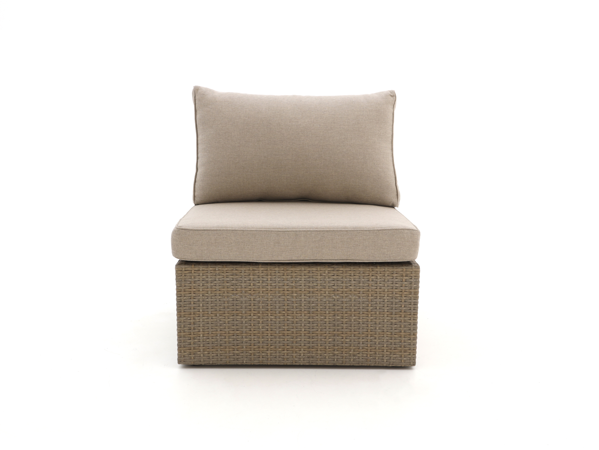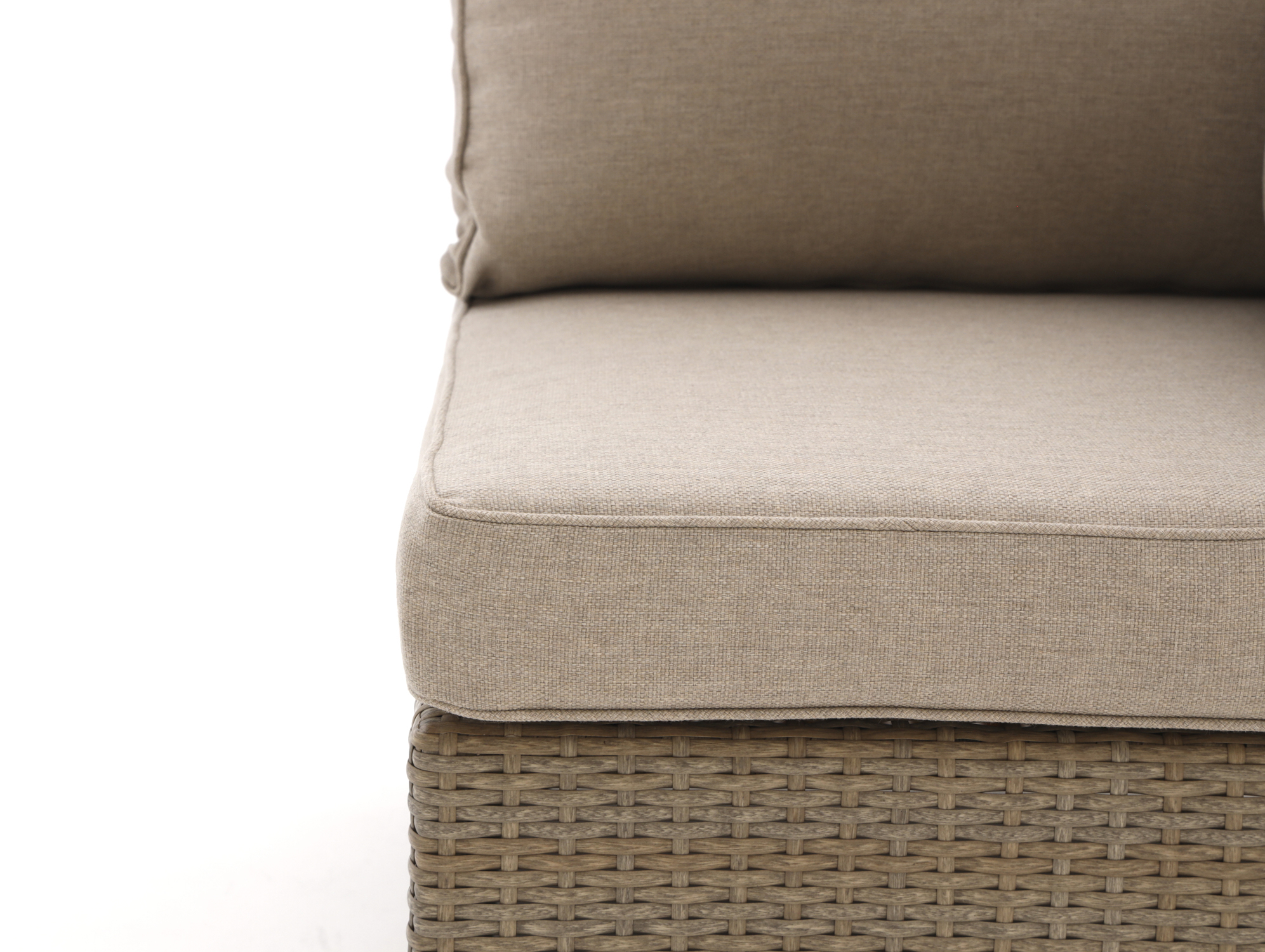 De Forza Cecita hoek loungeset is een comfortabele loungeset voor 5 personen, met een hoekopstelling waarmee je de ruimte in je tuin slim benut. Het wicker in beige geeft een rustige, natuurlijke look en is licht van gewicht, zodat je de delen makkelijk verschuift als je een keer anders wilt zitten of wilt schoonmaken. Het aluminium frame is sterk, kan niet doorroesten en vraagt weinig onderhoud, dus je hoeft er niet de hele zomer mee in de weer te zijn. De kussens zijn inbegrepen, dus je kunt direct neerploffen zonder eerst passende kussens te zoeken. En dankzij de afritsbare hoezen maak je ze makkelijker schoon als er een keer koffie of ijs naast gaat in plaats van erin.