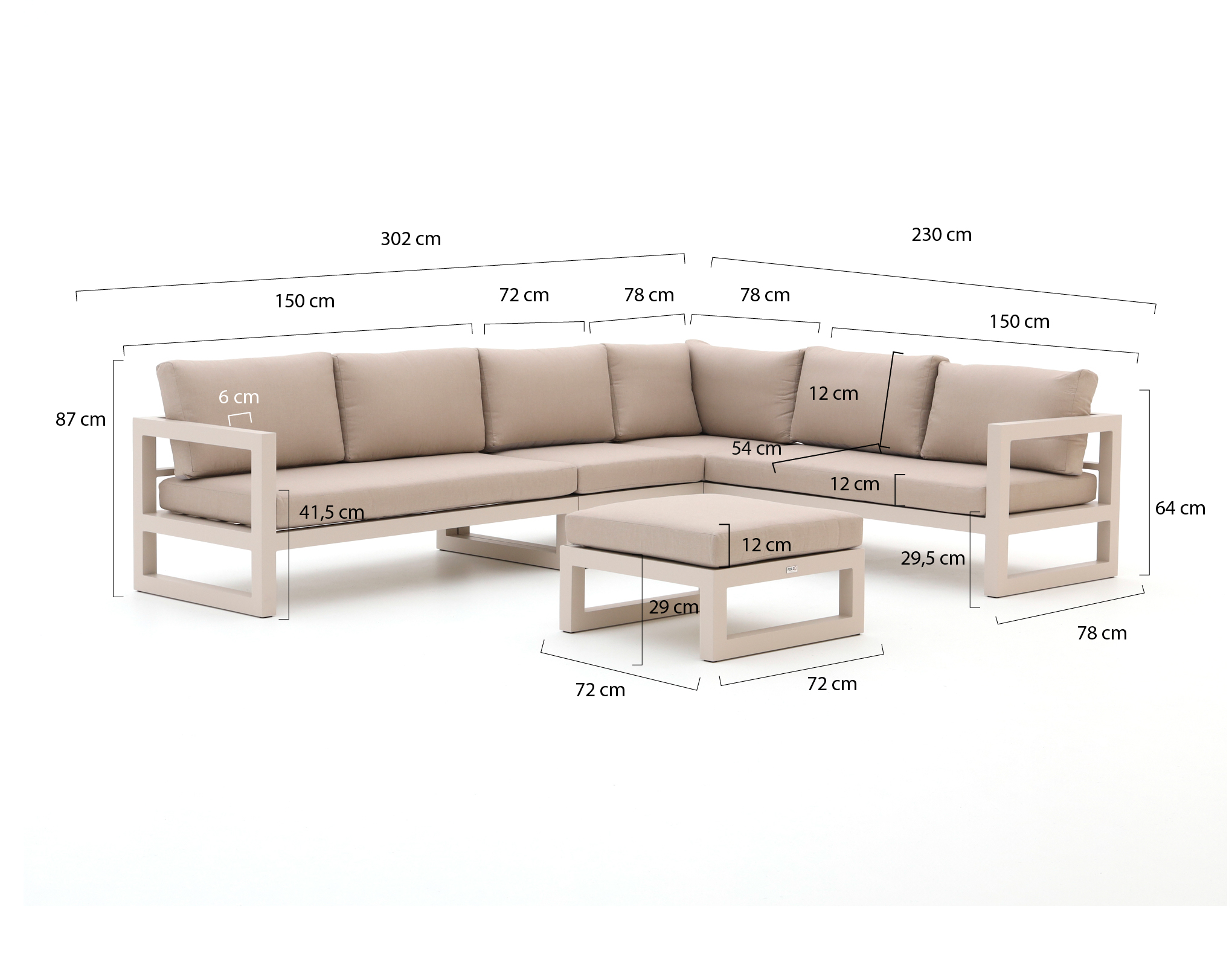 • Hoekopstelling voor 6 personen: Je creëert één vaste loungehoek waar iedereen tegelijk kan zitten, zonder losse stoelen te hoeven aanschuiven.