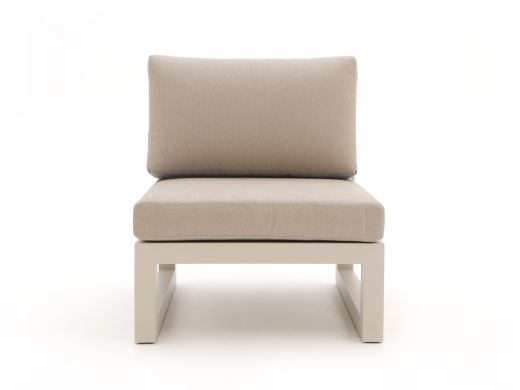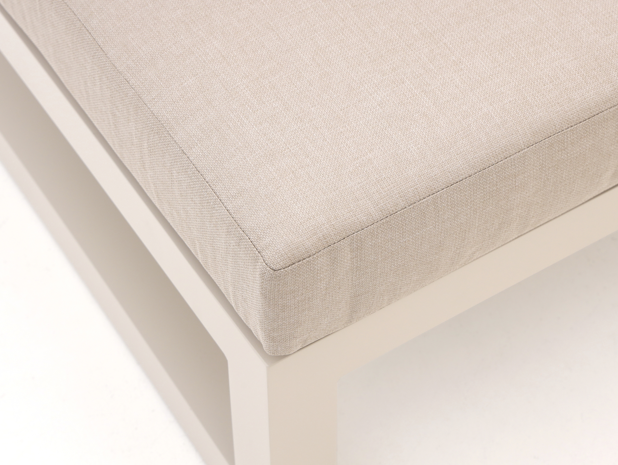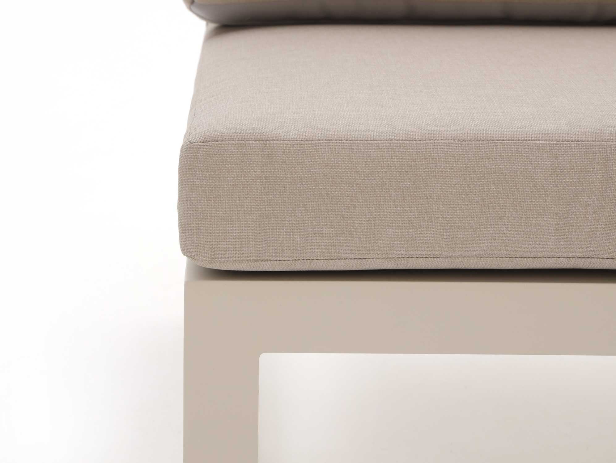 De Forza Citerna lounge tussenmodule is een losse extra zitplek voor je Citerna loungeset, inclusief kussens in een warme beige kleur. Het aluminium frame is licht van gewicht, waardoor je dit deel makkelijk optilt als je je set wilt verschuiven of je terras wilt schoonmaken. De kussenhoezen zijn afritsbaar, dus haal je ze er zo af als je ze een keer wilt reinigen. Handig als je net die ene "ik let wel op met de drankjes hoor" gast hebt gehad.