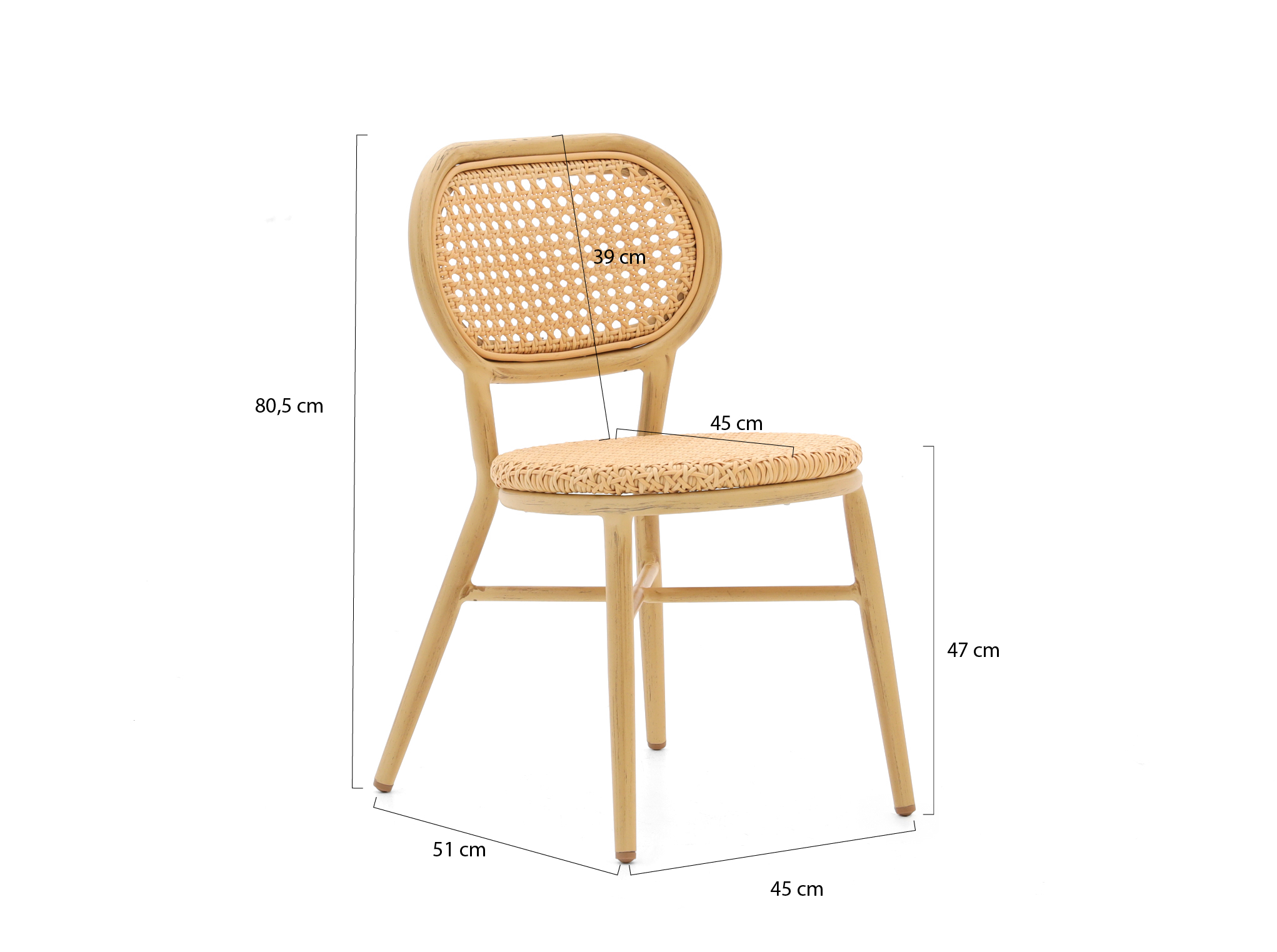 • Wicker zitting: blijft goed in weer en wind en is lekker licht om te verplaatsen