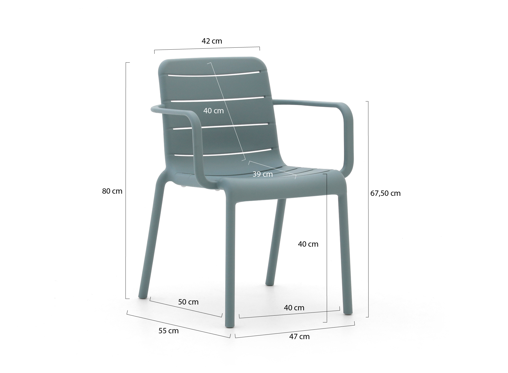 • Licht kunststof frame: je verplaatst de stoel makkelijk als je je terras wilt omgooien