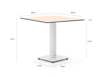 Bellagio Canzo tafelblad 80x80cm t.b.v. inklapbaar pootstel (enkel)   + 0,-