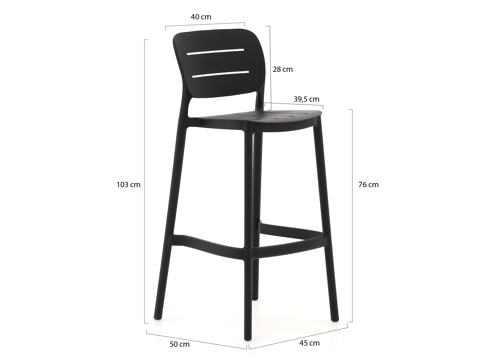 Kunststof zitting en frame: De stoelen zijn gemaakt van kunststof, wat ze licht en makkelijk verplaatsbaar maakt. Ook fijn: je hoeft je geen zorgen te maken over een regenbui.