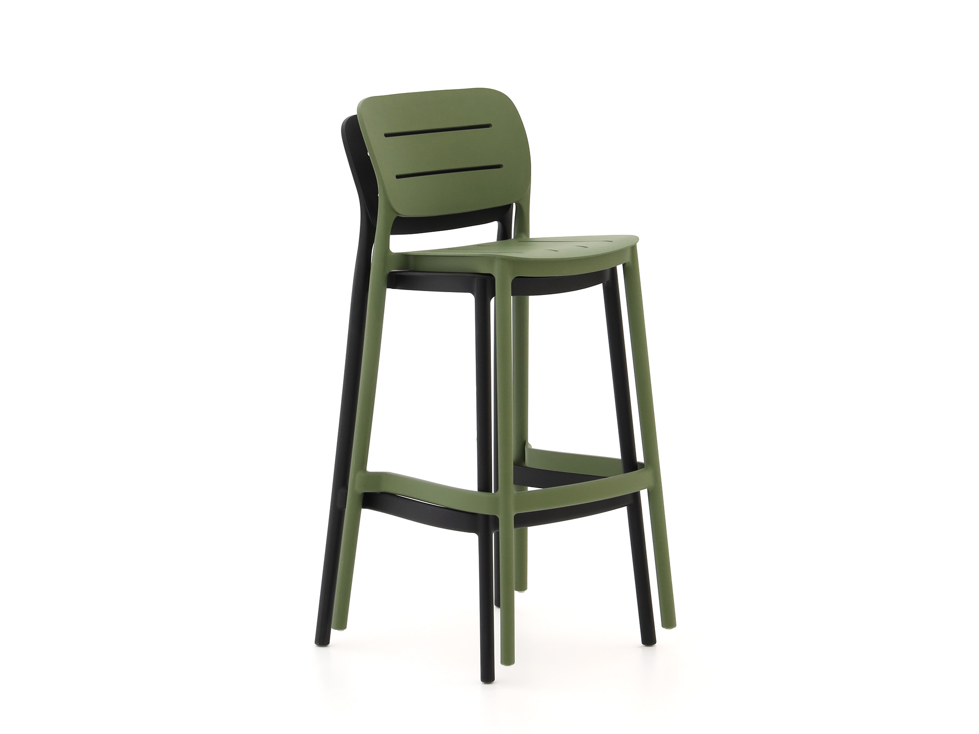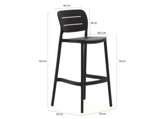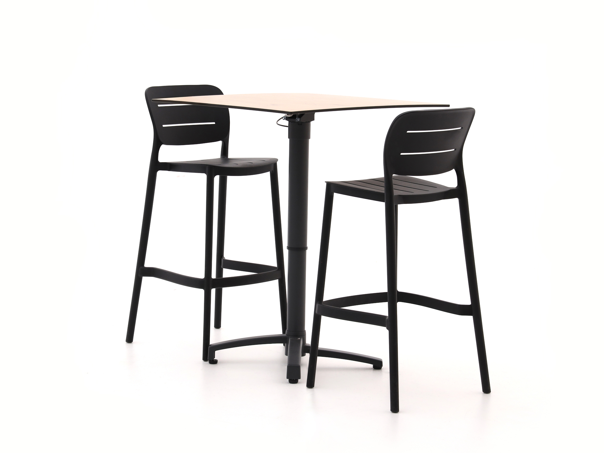 Als je op zoek bent naar een compacte en veelzijdige barset voor twee personen, dan is de Forza Pazzia/Canzo een goede keuze. Deze set bestaat uit een vierkante tafel en twee stoelen die je kunt verstellen en stapelen. Ideaal voor een gezellig ontbijt of een borrel in de avondzon. Het tafelblad heeft een HPL teak look, wat het een warme uitstraling geeft zonder dat je je zorgen hoeft te maken over onderhoud. En met het aluminium onderstel hoef je je geen zorgen te maken over roest.