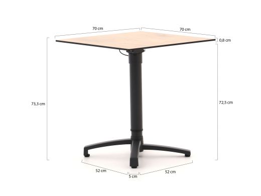 Aluminium onderstel: Het onderstel van de tafel is gemaakt van aluminium, wat betekent dat het niet roest en weinig onderhoud nodig heeft. Ideaal voor buitengebruik.