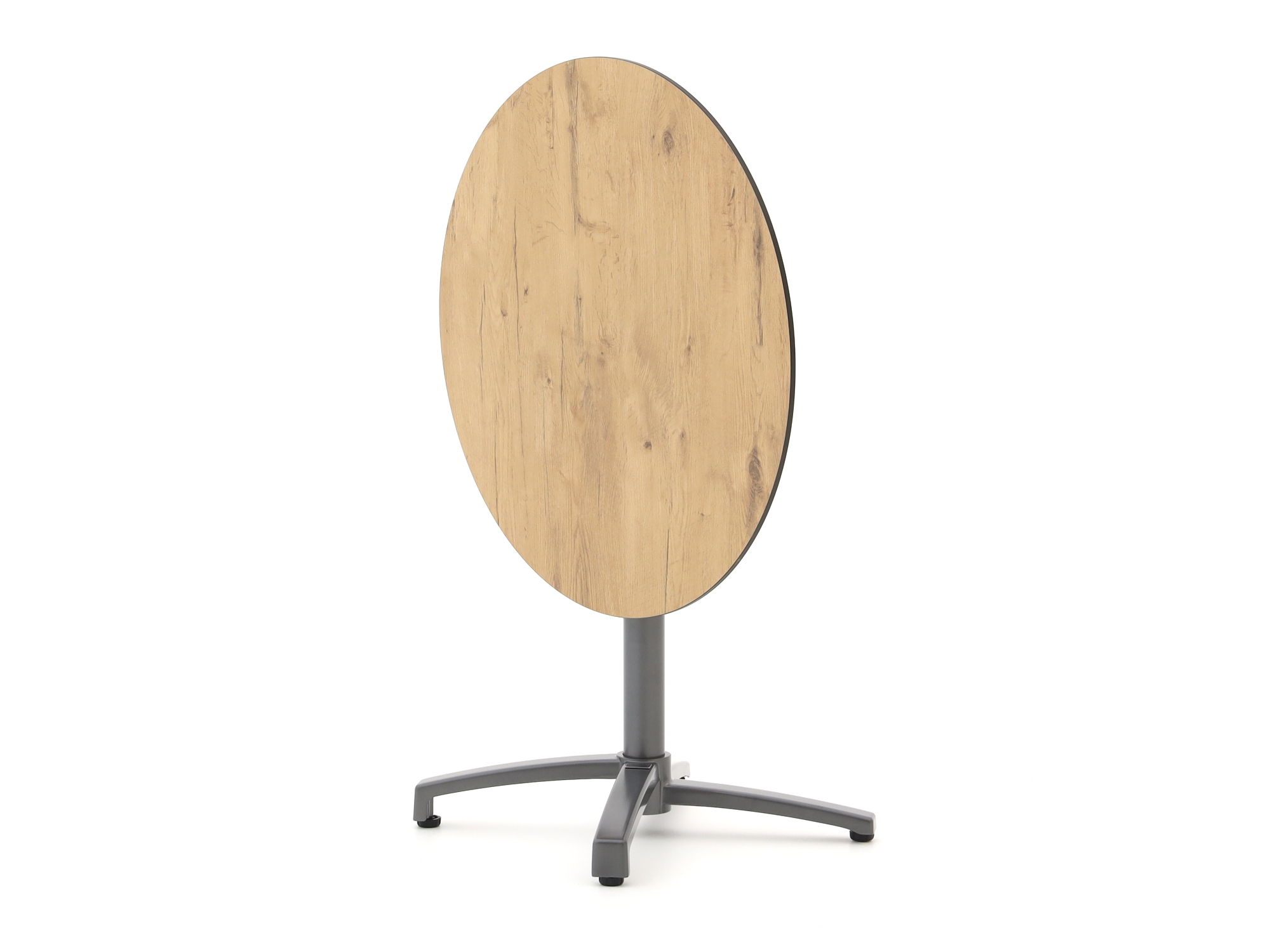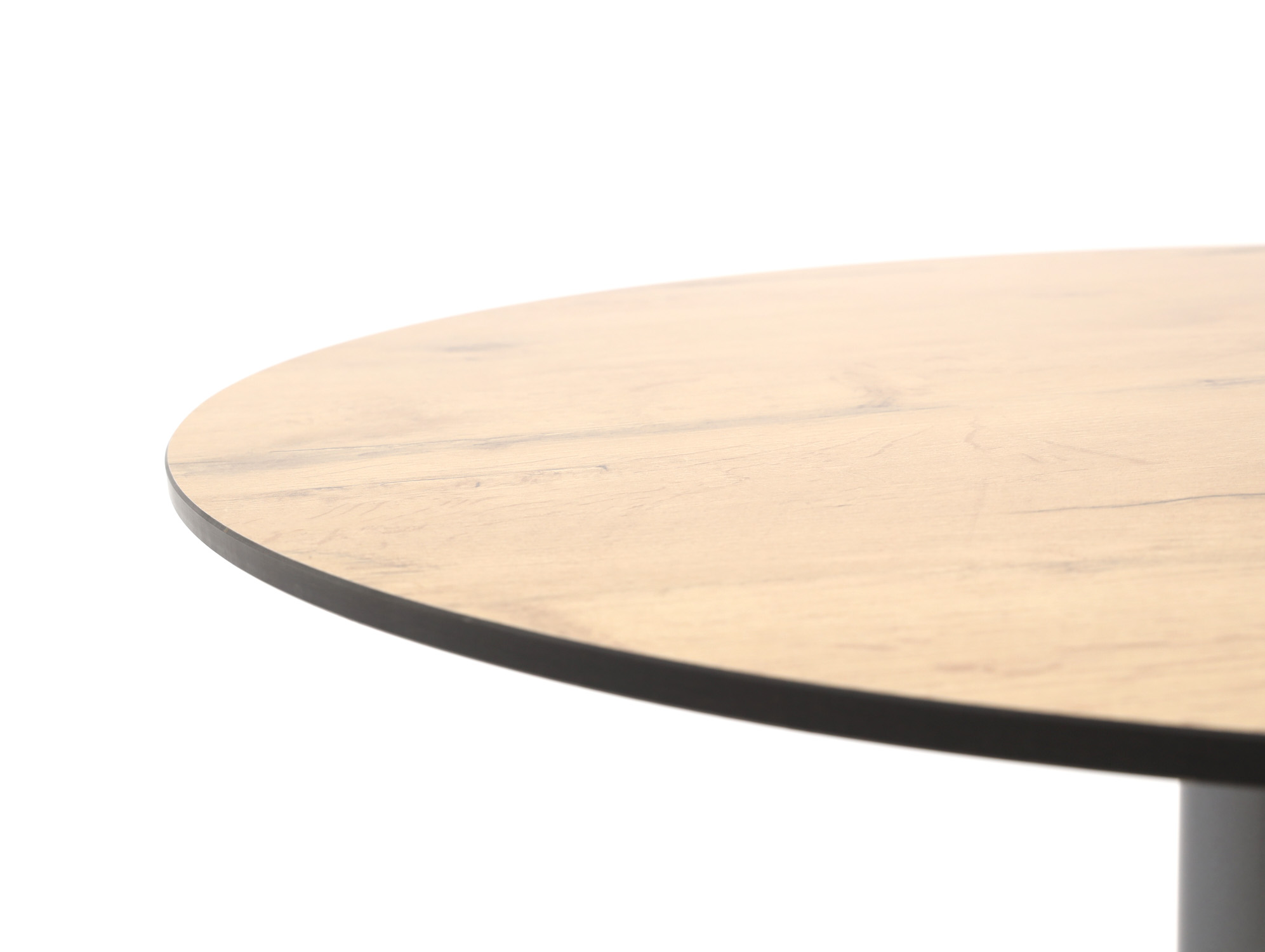 HPL tafelblad in teak-look: Dit kras- en vlekbestendige blad ziet eruit als hout, maar is veel makkelijker in onderhoud. Geen zorgen over kringen of vlekken, gewoon genieten.