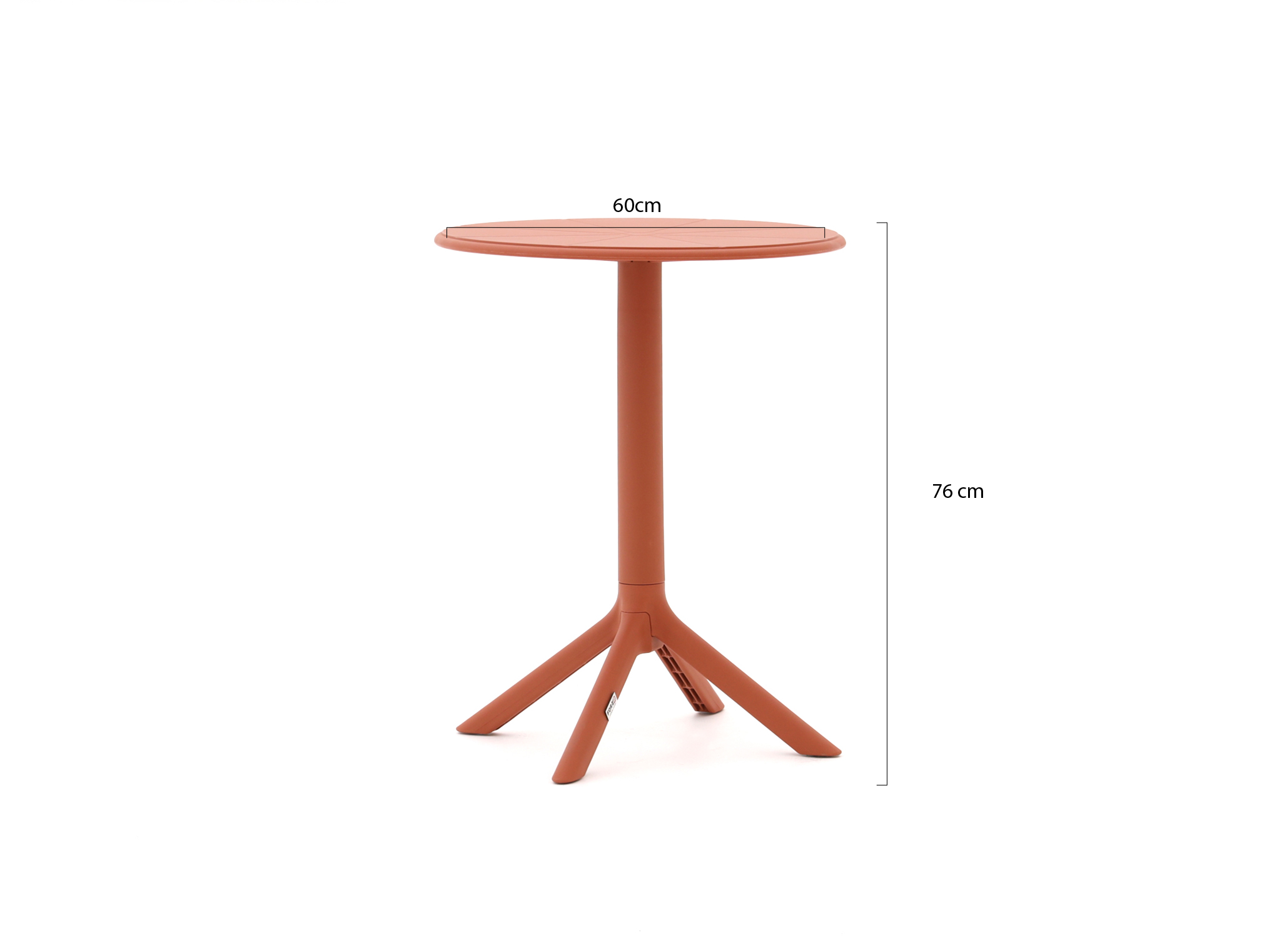 • Compact formaat: Met een blad van 60 cm past de tafel makkelijk op een balkon of klein terras, maar heb je toch plek voor 2 borden en een kan drinken.