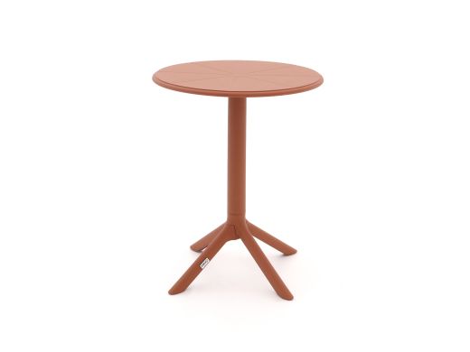 De Forza Rieti dining tuintafel is een compacte ronde tuintafel voor 2 personen, ideaal voor een balkon, klein terras of dat hoekje in de tuin waar je graag een koffieplek maakt. Met een rond kunststof blad van 60 cm in oranje en een rood kunststof onderstel valt hij lekker op, zonder dat hij veel ruimte inneemt. De tafel is licht van gewicht, dus je tilt hem makkelijk even opzij als je de stoelen anders wilt zetten of de vloer wilt vegen. Door de standaard eettafelhoogte van 76 cm zit je gewoon prettig aan een normale tuinstoel. Zoek je een vrolijke, kleine tafel om aan te ontbijten, borrelen of even de laptop buiten neer te zetten, dan past deze Rieti daar helemaal bij.