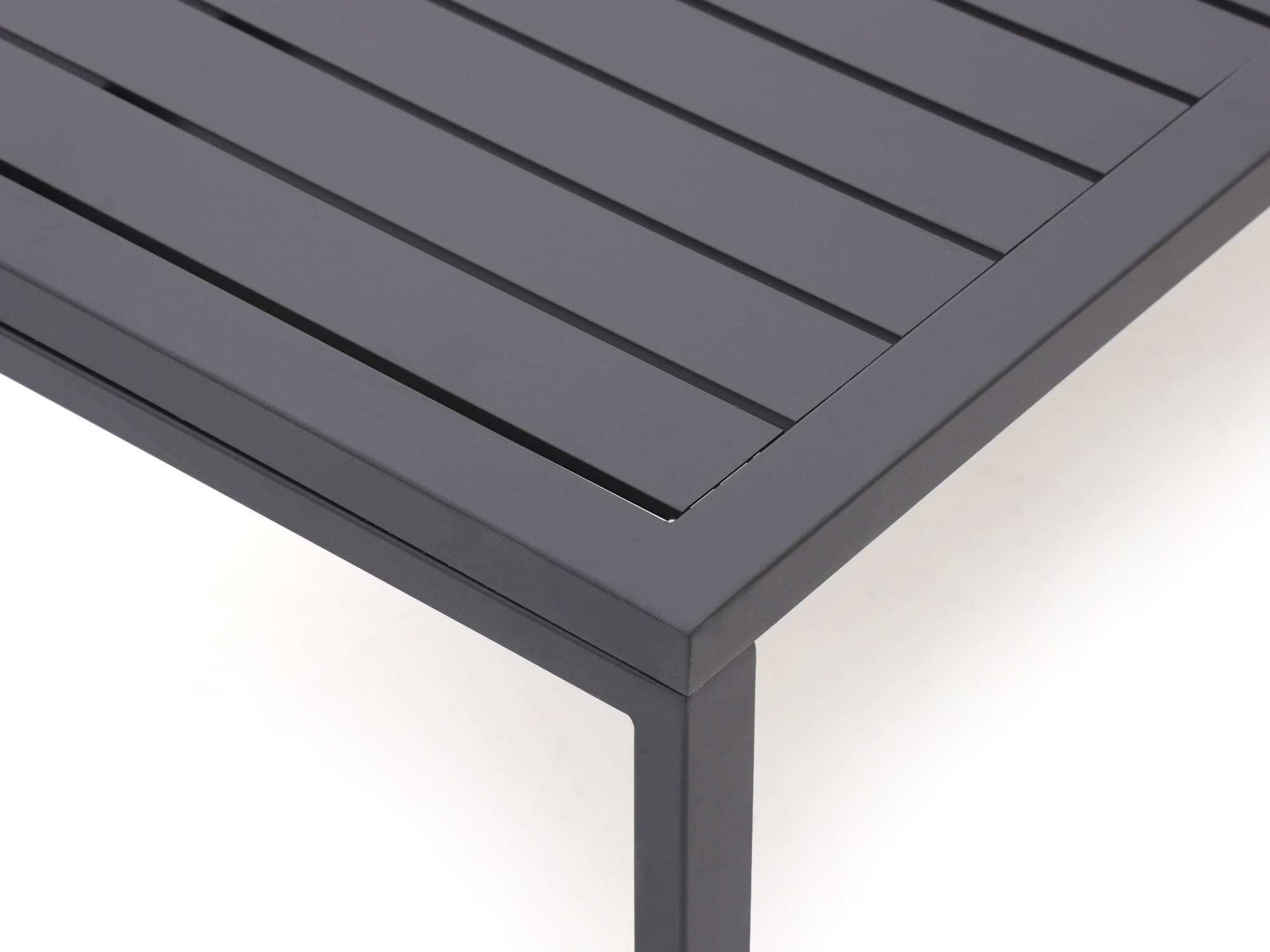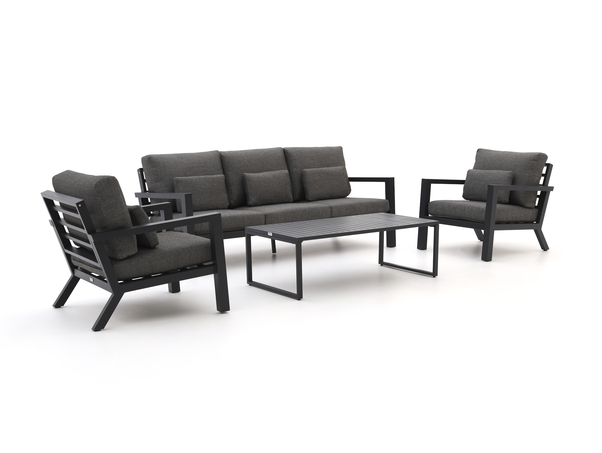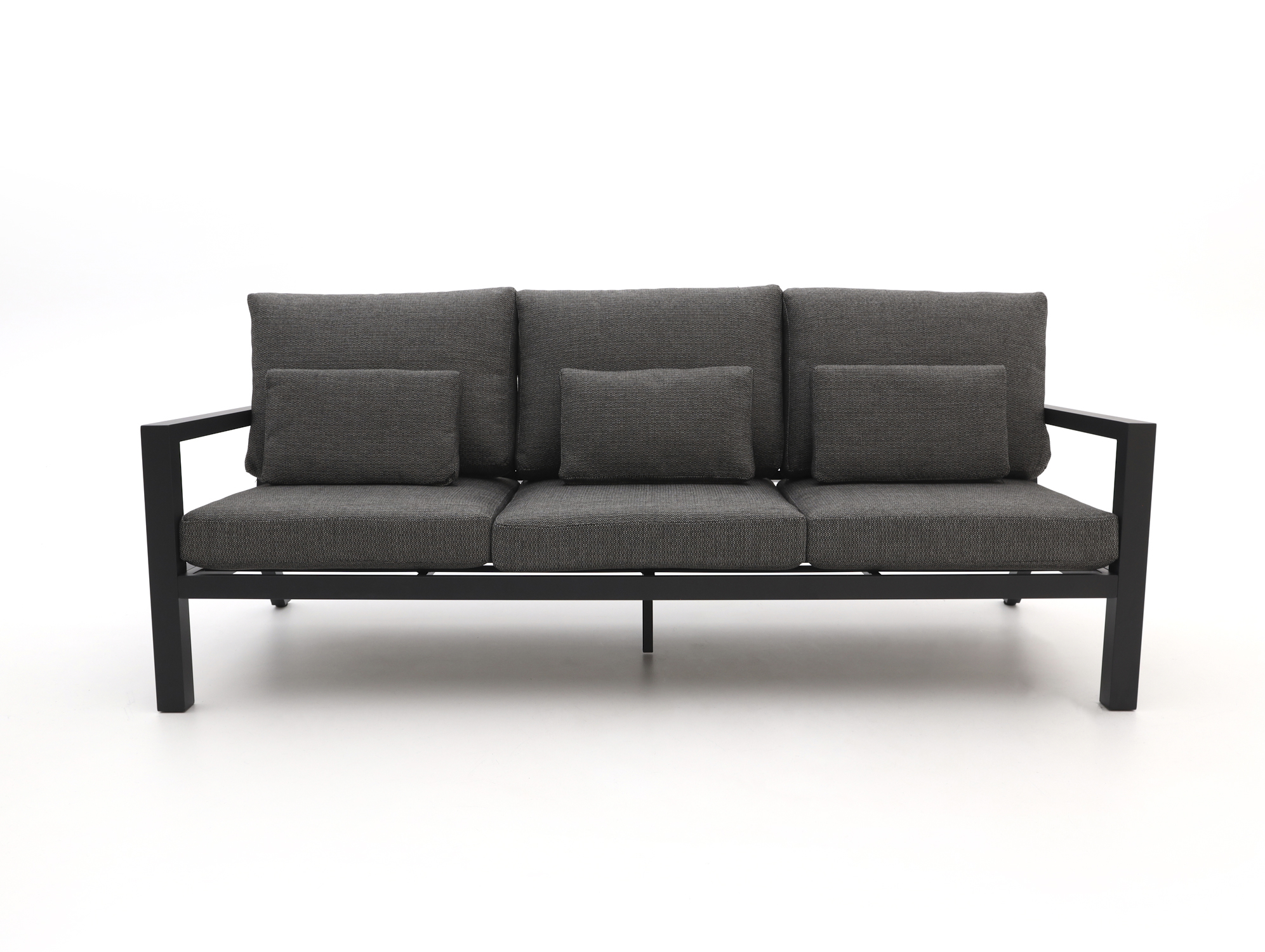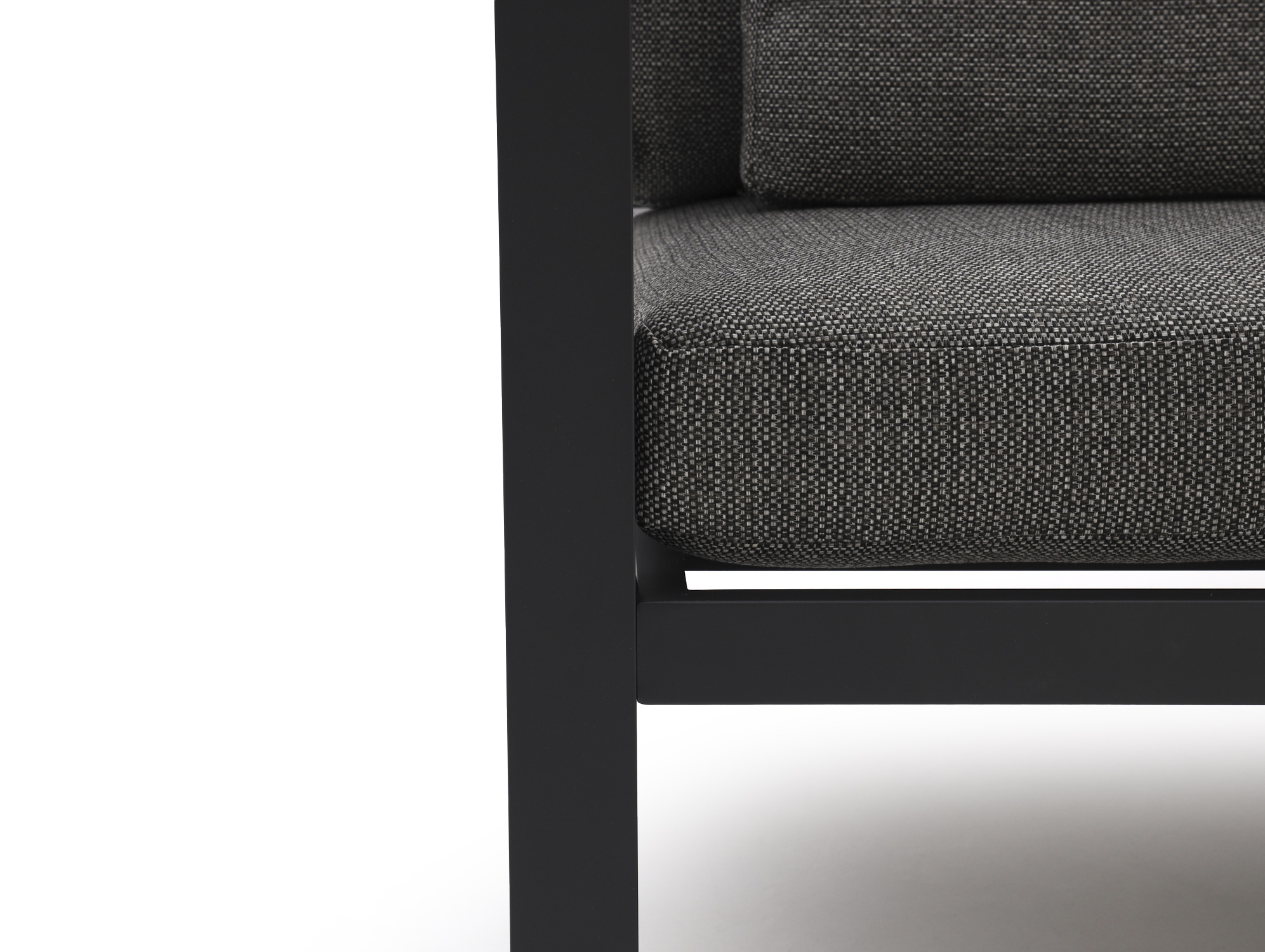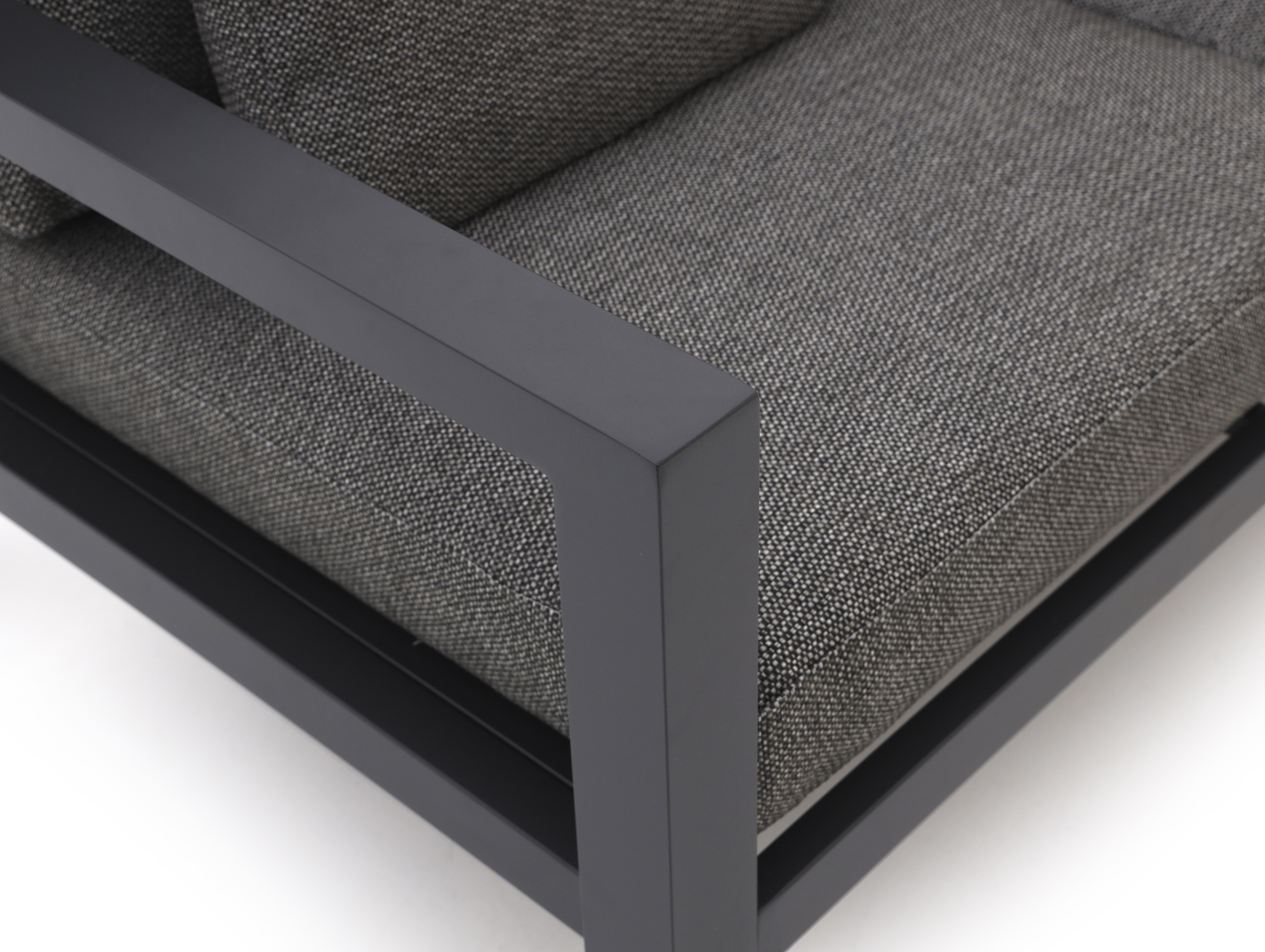 De Forza Sarnico stoel bank loungeset is een compacte set voor 5 personen, ideaal als je relaxed wilt zitten maar ook af en toe aan tafel wilt zitten met een drankje of een simpele maaltijd. Het aluminium frame is licht en sterk, waardoor je de banken en tafel makkelijk verschuift als je je terras eens anders wilt indelen of even wilt schoonmaken. De donkergrijze kussens zijn inbegrepen, zodat je in één keer klaar bent en niet hoeft te zoeken naar passende kussens. De hoezen zijn afritsbaar, dus heb je een keer een vlek na een knoei actie, dan haal je ze er gemakkelijk af om te reinigen.